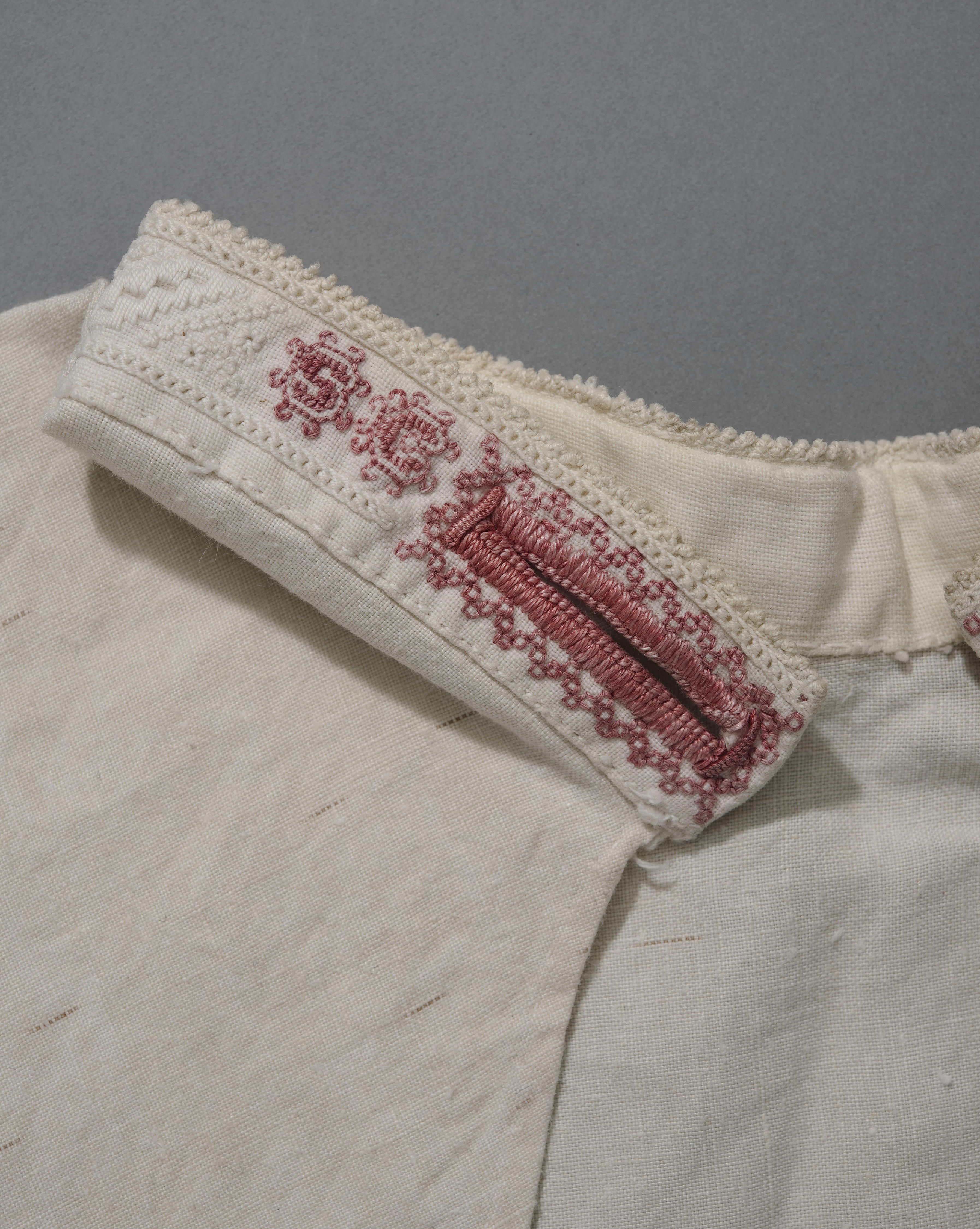 Linnen 'halsje' of geborduurde halsboord, afkomstig van Marken.