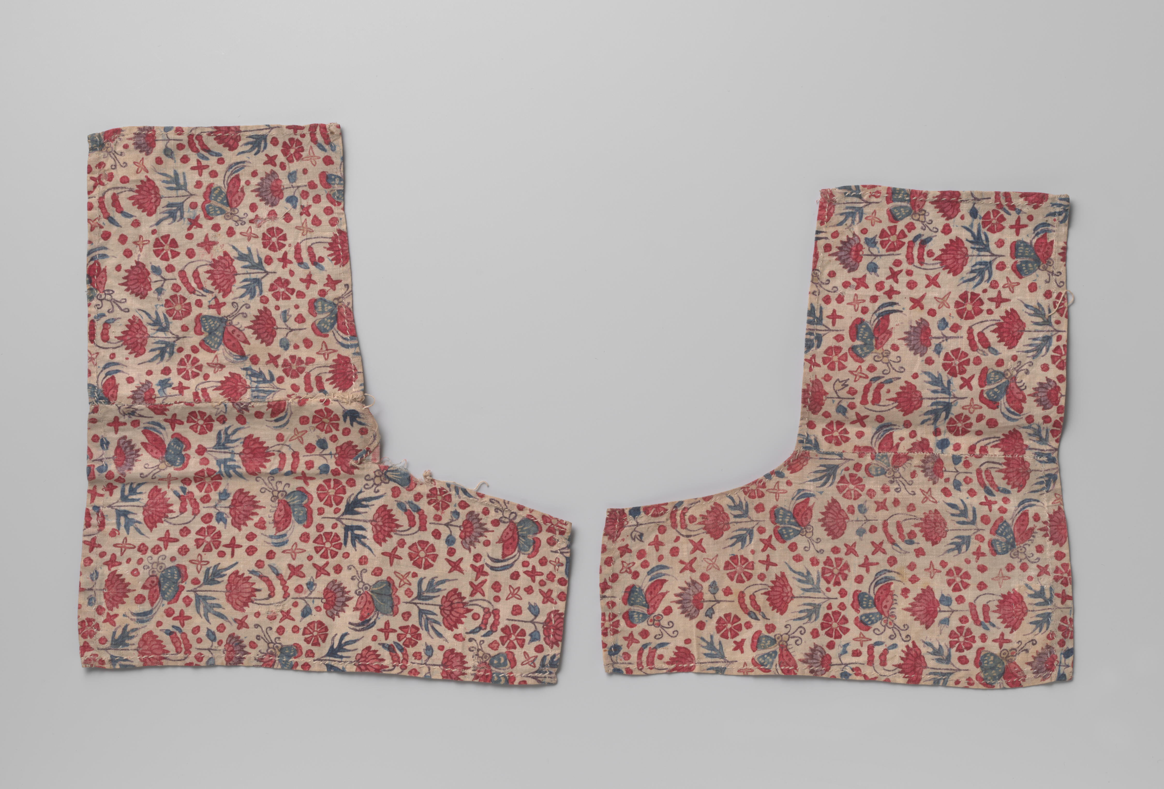Zogenoemde 'slauwen' van katoen, gedragen door een meisje in streekdracht van het eiland Marken. Een slauw is een horizontale strook stof die ter hoogte van het middel over het rijglijf wordt gespeld. De wasbare slauw dient als bescherming van het geborduurde wollen rijglijf. Deze slauwen zijn in 1943 op Marken verworven tijdens veldwerk door medewerkers ...