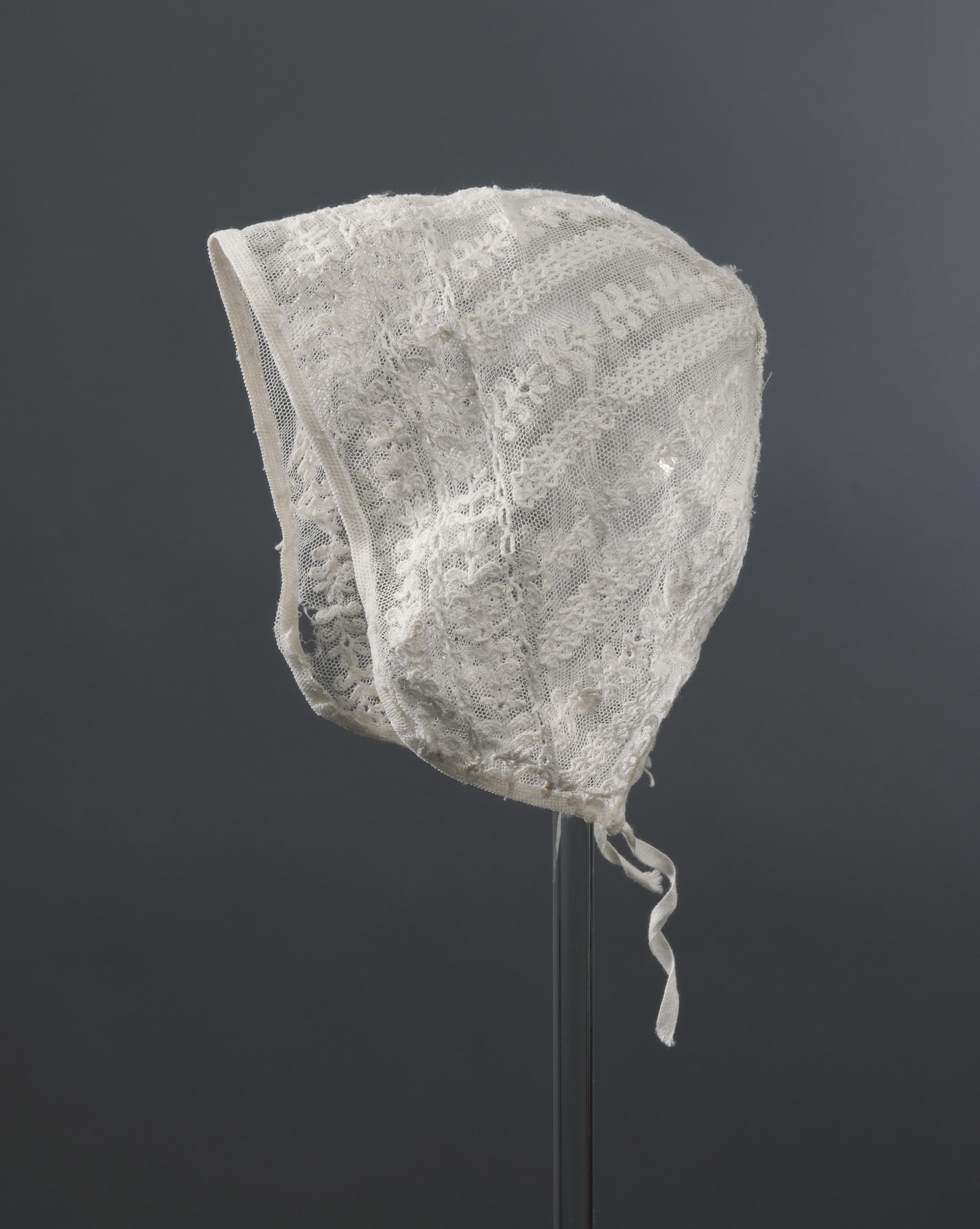 Babymuts van getamboereerde tule, afkomstig uit Zuid-Holland.