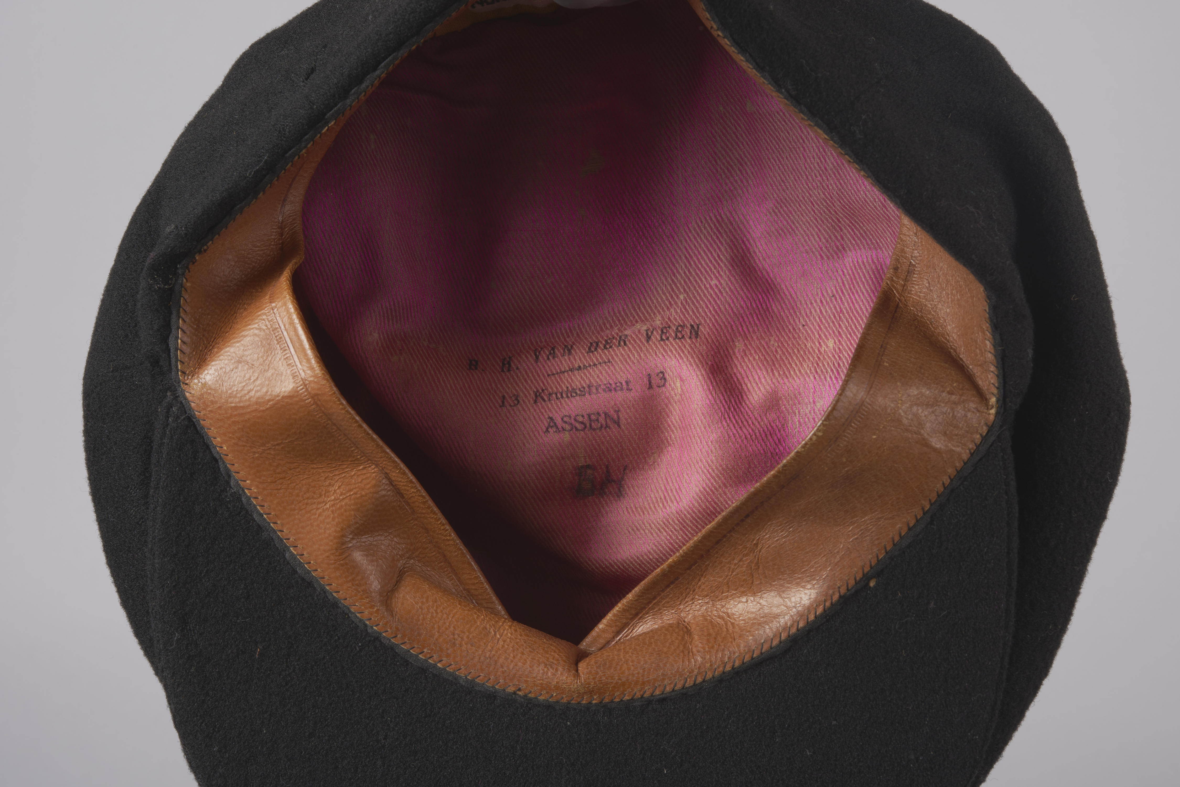 Omstreeks 1910 kwamen de segmentenpetten op de markt. Ze hebben een platte bol, die samengesteld is uit acht segmenten. Waar deze samenkomen wordt een knoop bevestigd. De klep van textiel kan met een drukknoop aan de bol worden vastgezet. In deze pet staat een stempel met de tekst ‘B.H. van der Veen, Kruisstraat 13, Assen’. ...
