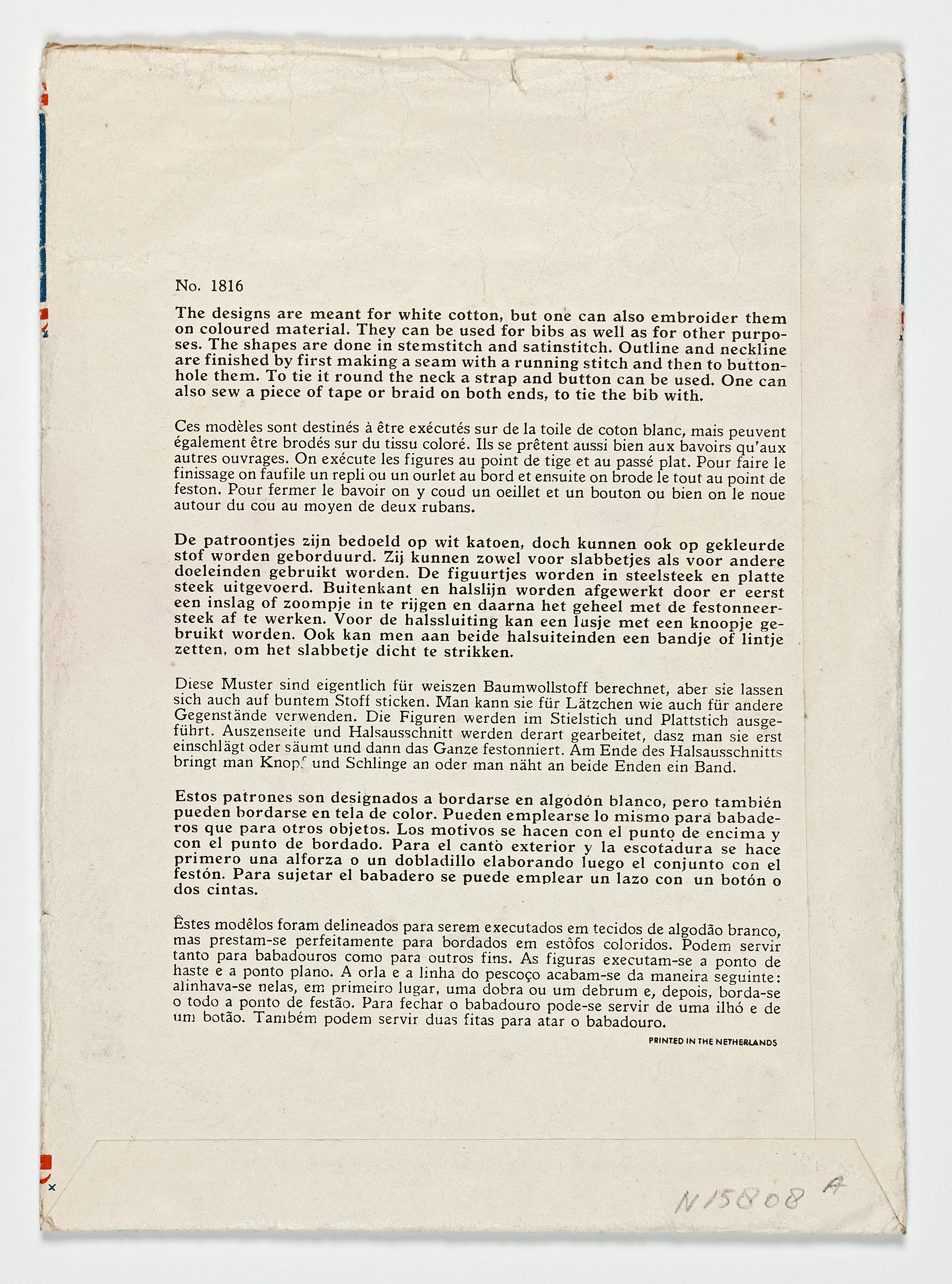 Zakje met strijkpatronen voor vier slabbetjes met verschillende diermotieven.