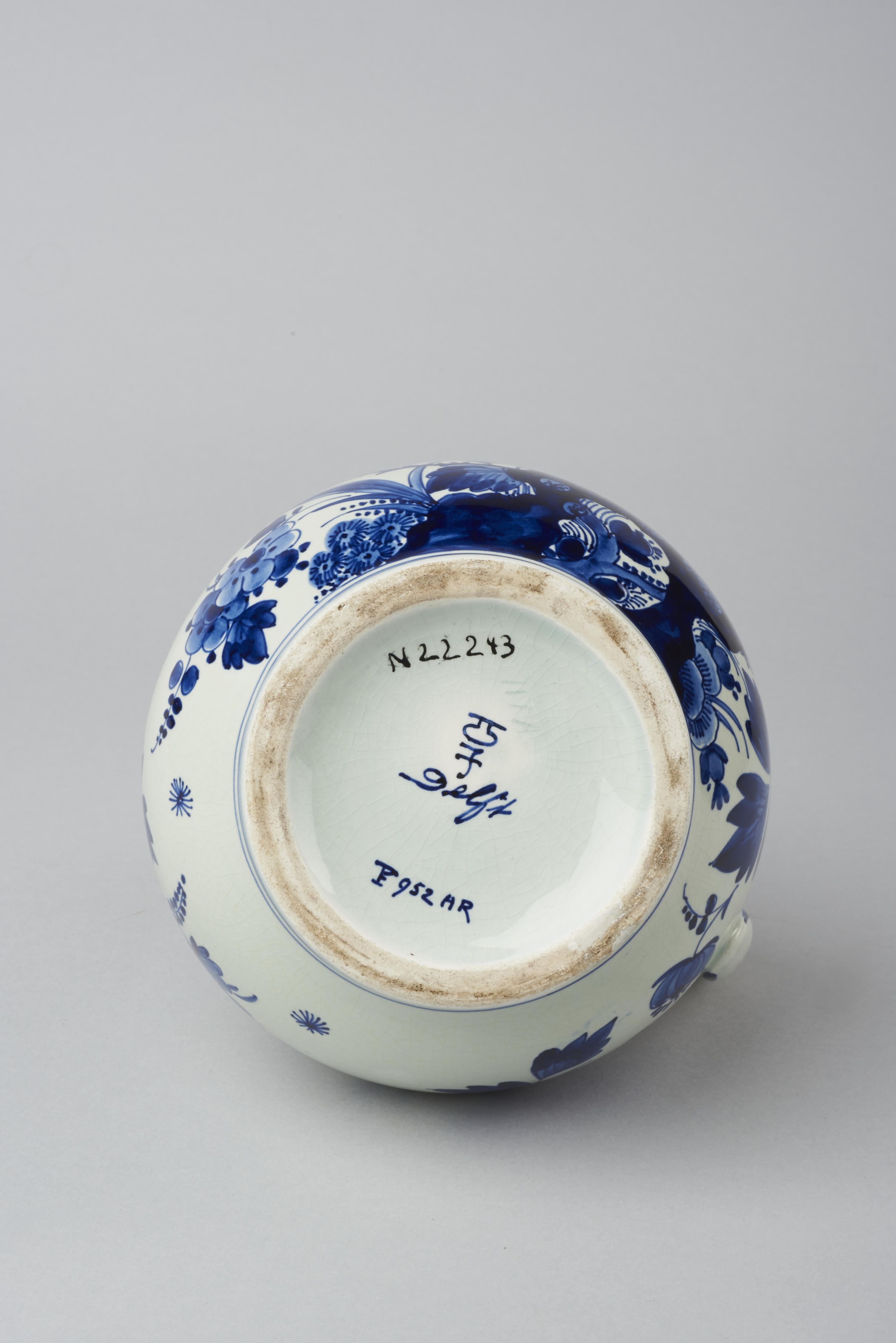 Sierkan met een afbeelding van een vogel in een tuin met pioenrozen.