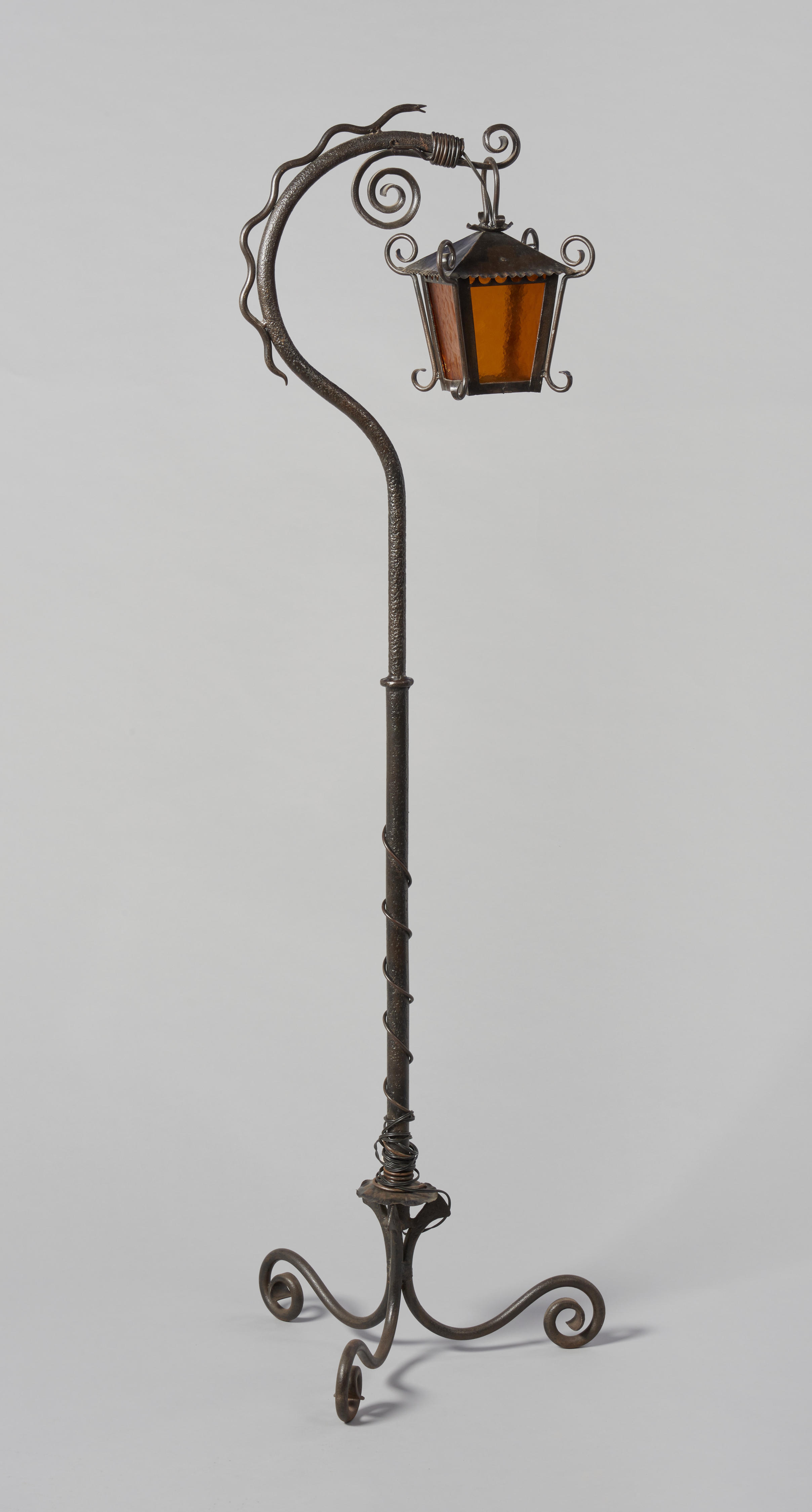 Deze elektrische schemerlamp dateert uit circa 1930, maar sluit qua vormgeving sterk aan bij de negentiende eeuw. Niet alleen werd soms elektriciteit ingebouwd in bestaande lantaarns, ook veel nieuw ontworpen lampen behielden een klassieke vorm.