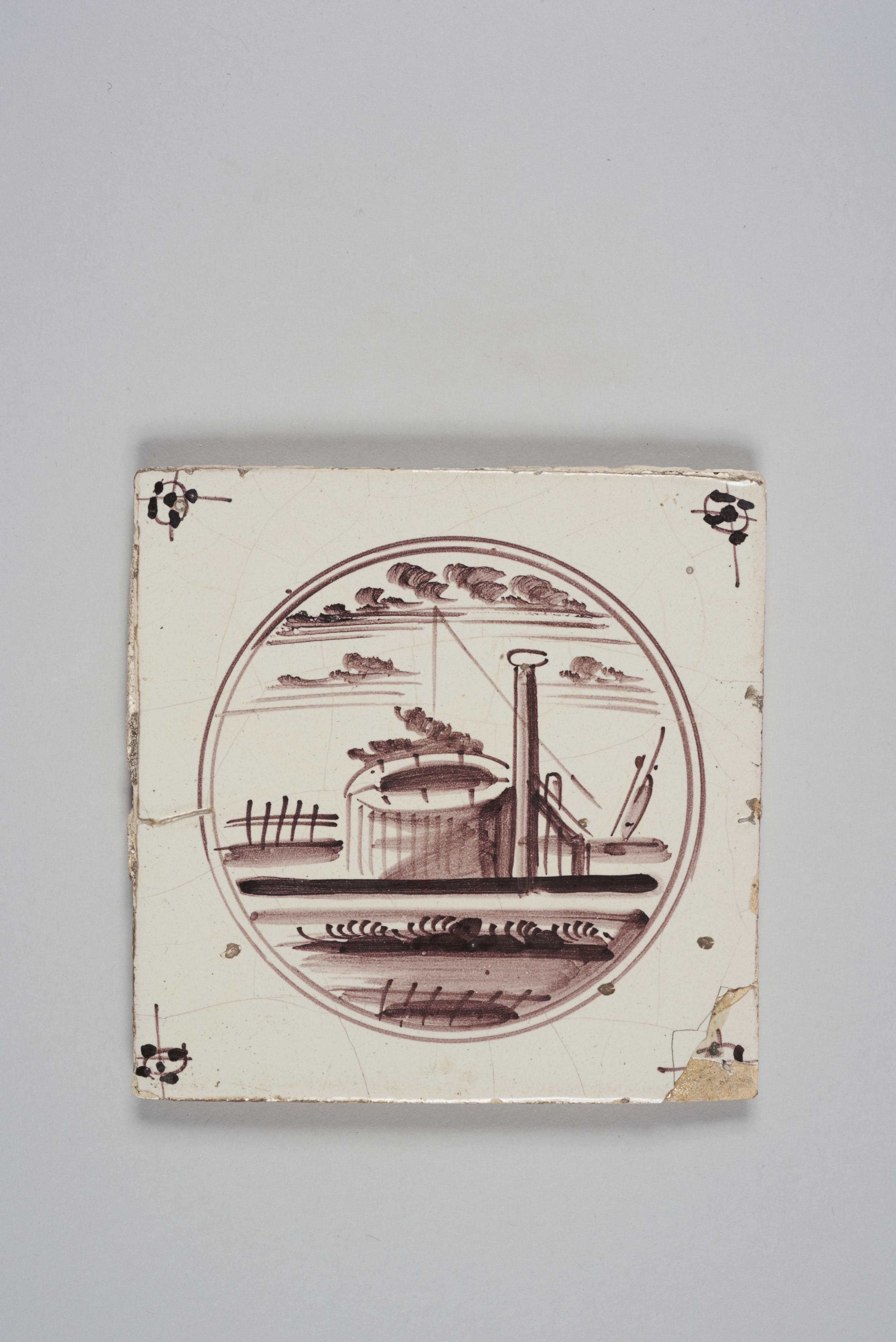 Wandtegel met afbeelding waterput in cirkel, 1700–1800