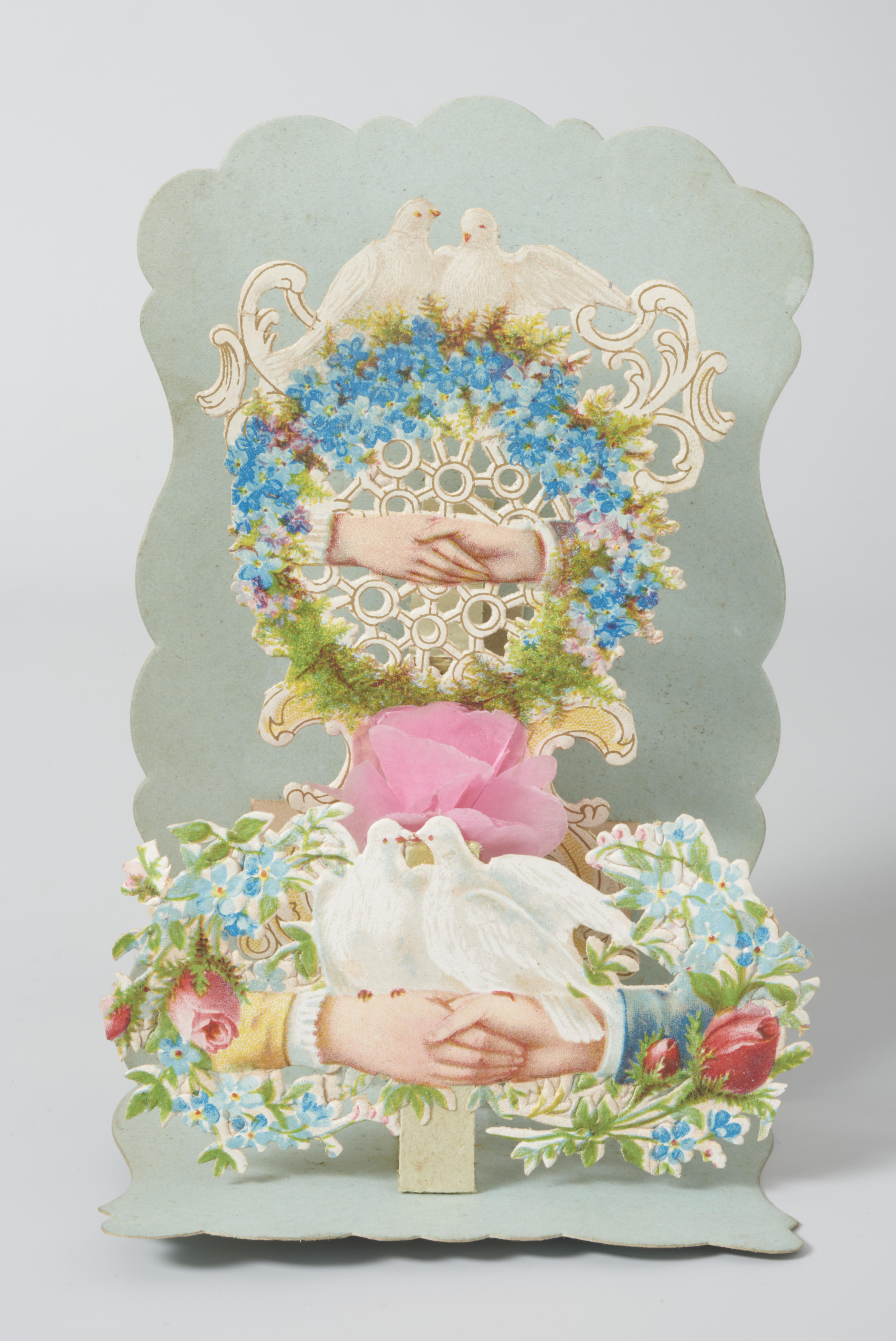Wenskaart, geschonken aan Marinus Paardekooper en Suzanna Bos ter gelegenheid van hun bruiloft op 12 juni 1935. Marinus en Suzanna trouwden in Nisse, Zeeland. Het opschrift op de kaart luidt: ‘Hartelijk Gefeliciteerd'.