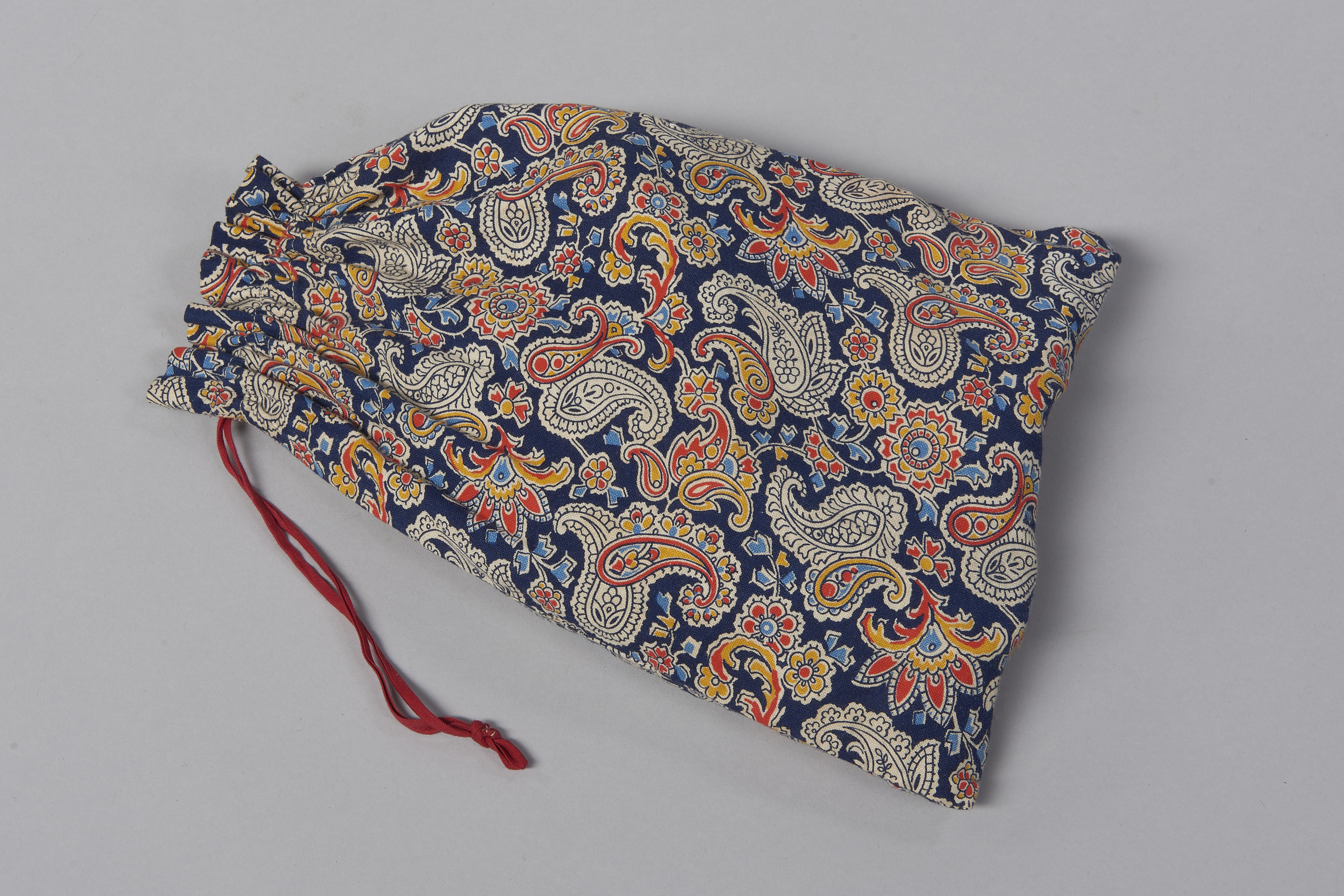 In het zakje van bedrukt katoen werden de haringen, grondplaatjes en scheerlijnen bij elkaar gehouden en meegenomen.