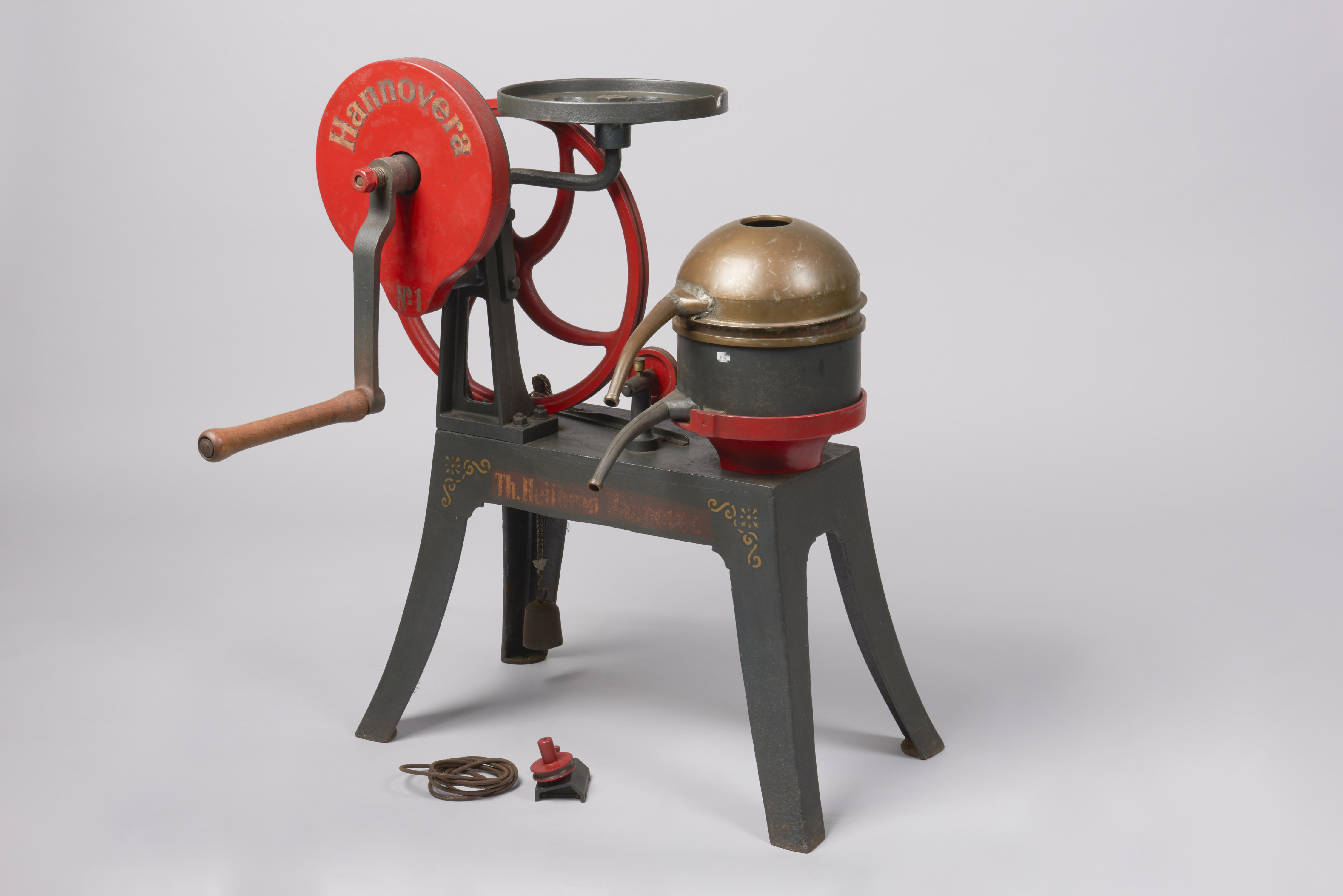 Separator van het merk Hannovera, model 1. De separator is een met de hand aangedreven centrifuge op een rechthoekig voetstuk van gietijzer. Hij is gebruikt voor het scheiden van vloeistoffen en ingezet voor de winning van room en (ontroomde) melk. Dit soort separatoren was gebruikelijk zowel in de zuivelindustrie, voor kleinschalige fabrieksmatige productie, als op ...