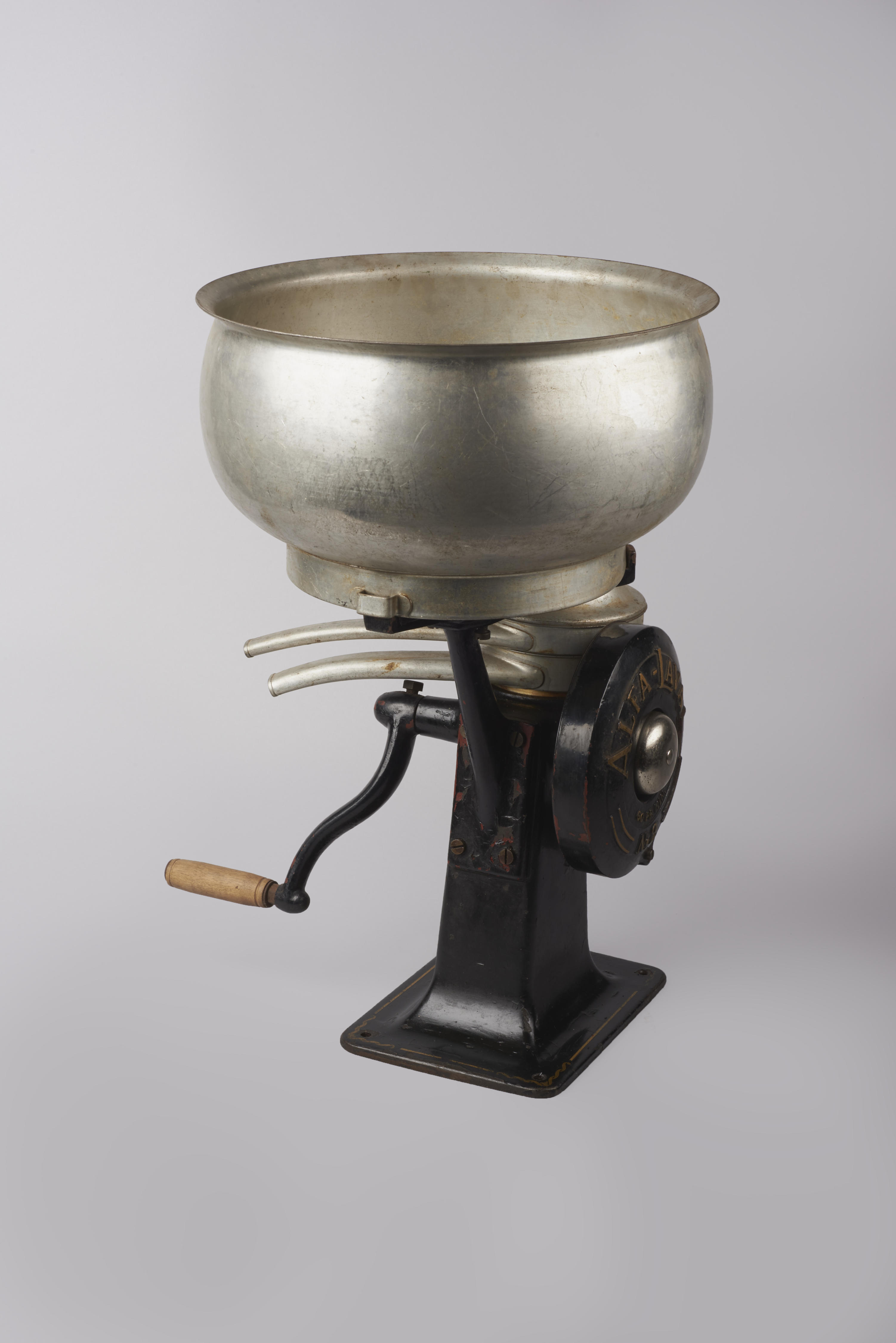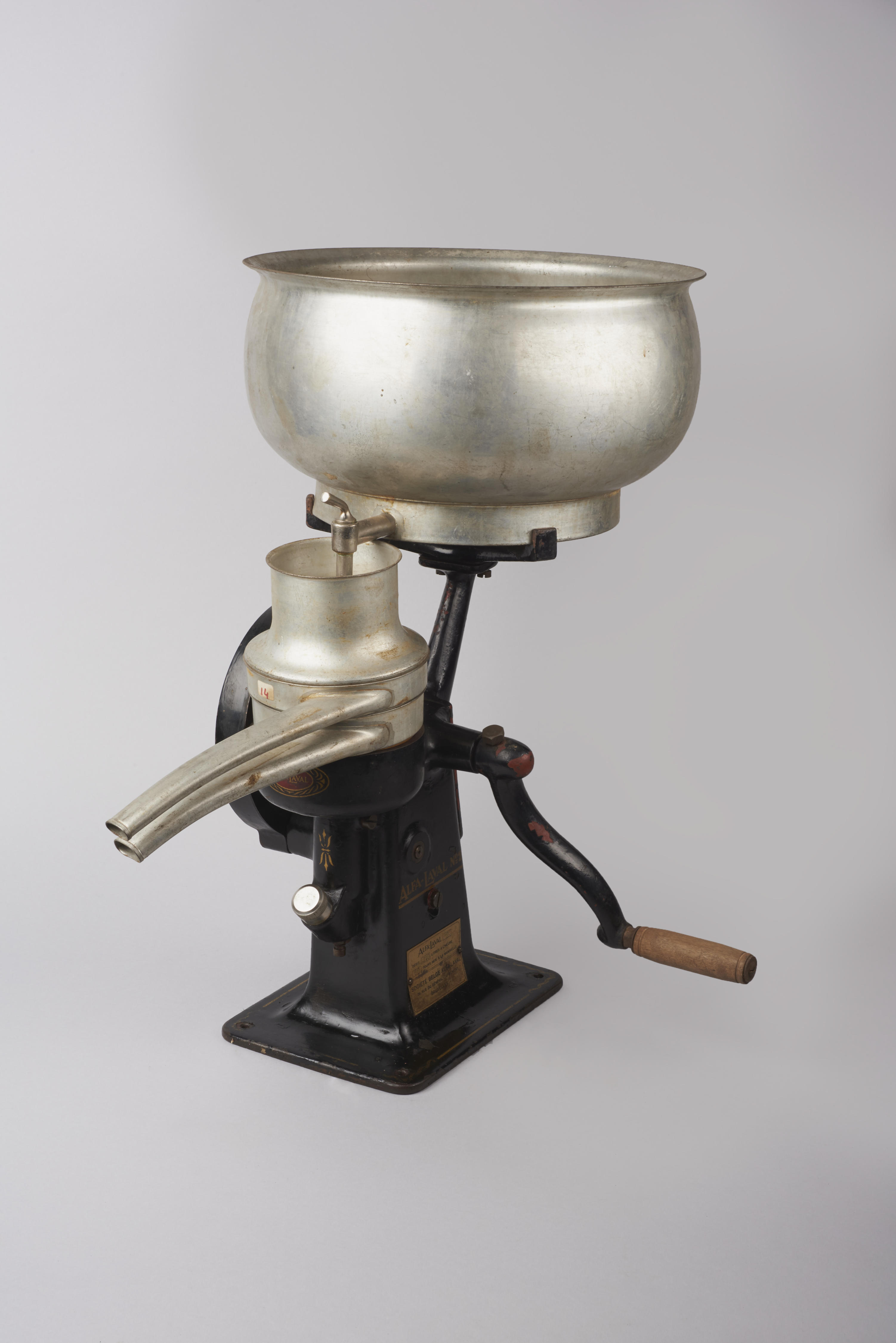 Separator van het merk Alfa Laval, model 60 en type 2. De separator is een tafelmodel en heeft een gecombineerde aandrijvingsmogelijkheid, zowel met de hand als elektrisch. Hij is gebruikt voor het scheiden van vloeistoffen en ingezet voor de winning van room en (ontroomde) melk. Dit soort separatoren was gebruikelijk zowel in de zuivelindustrie, voor ...
