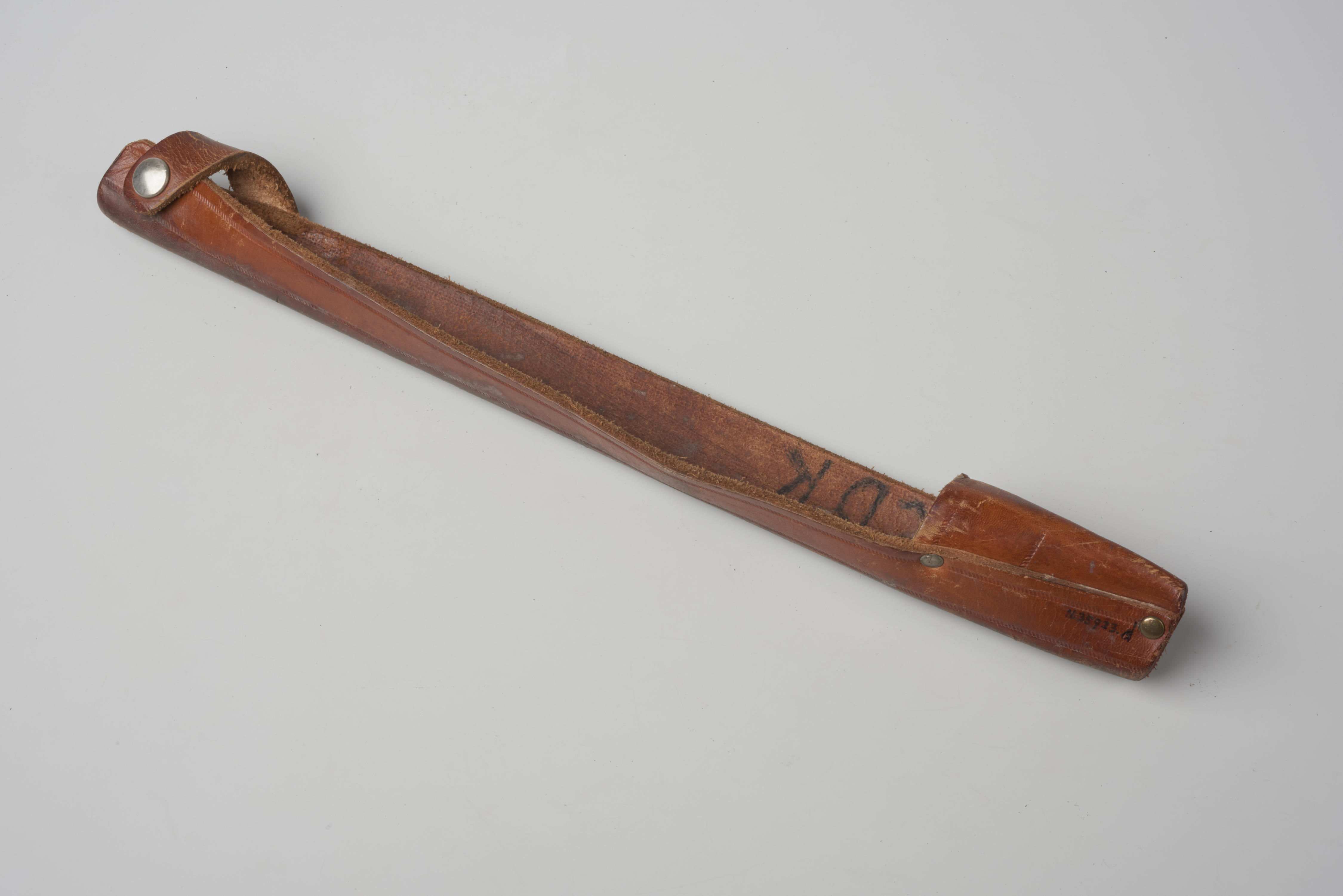 Bruin leren schaatsbeschermer voor een schoonrijdschaats met schoen.