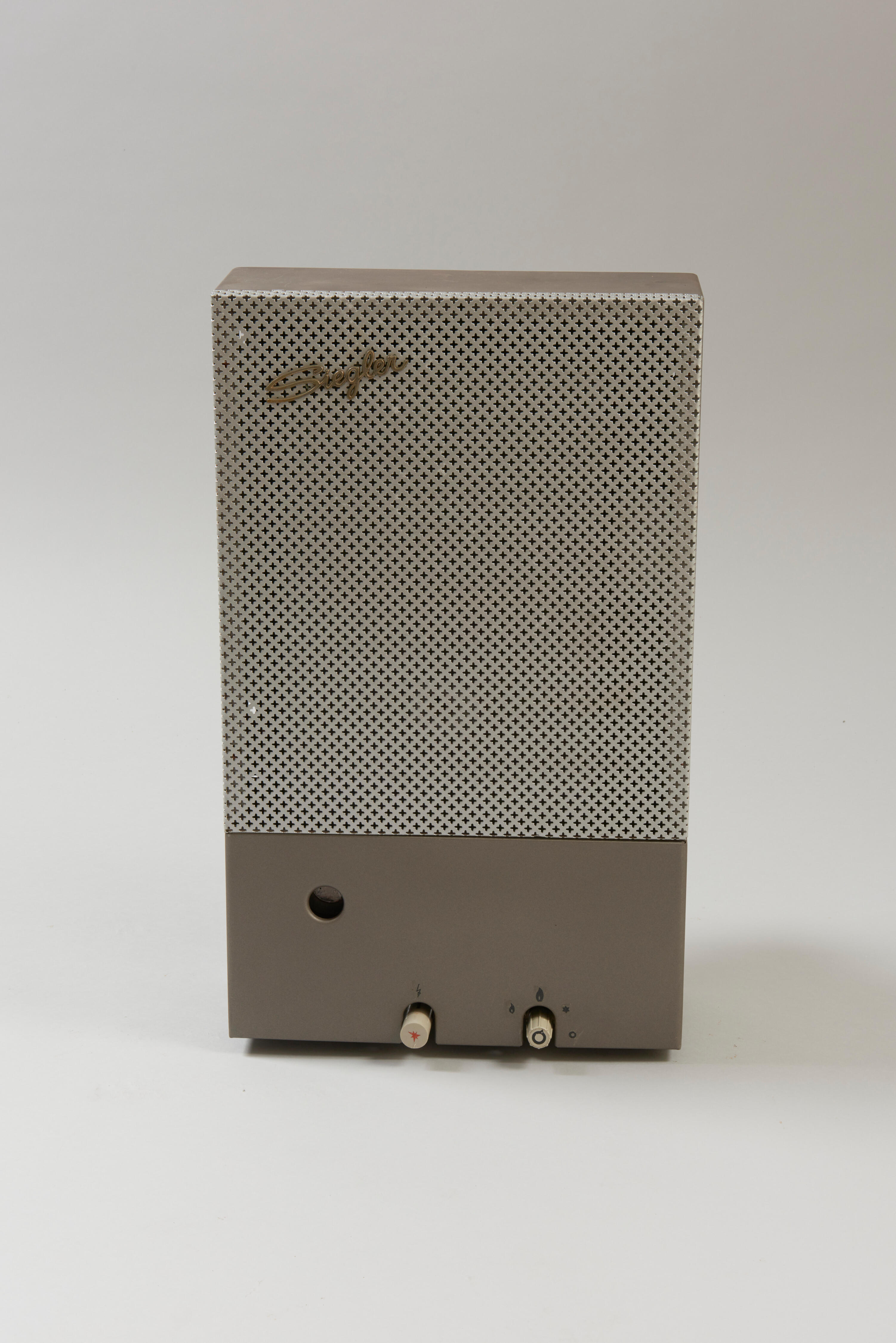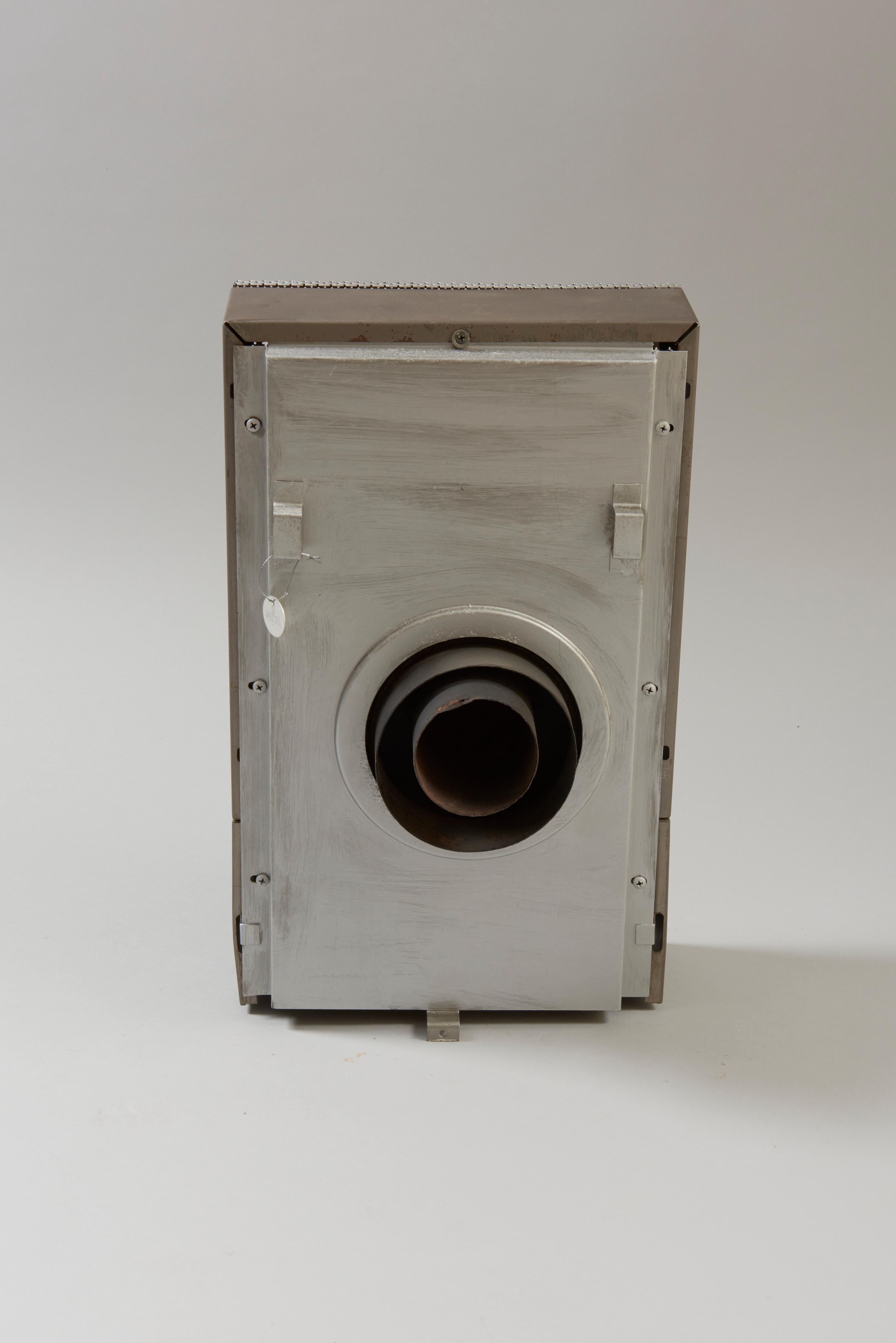 Grijze gasgevelkachel genaamd 'Siegler Pico 2000'. Deze kachel werd rond 1960 door Siegler vervaardigd.