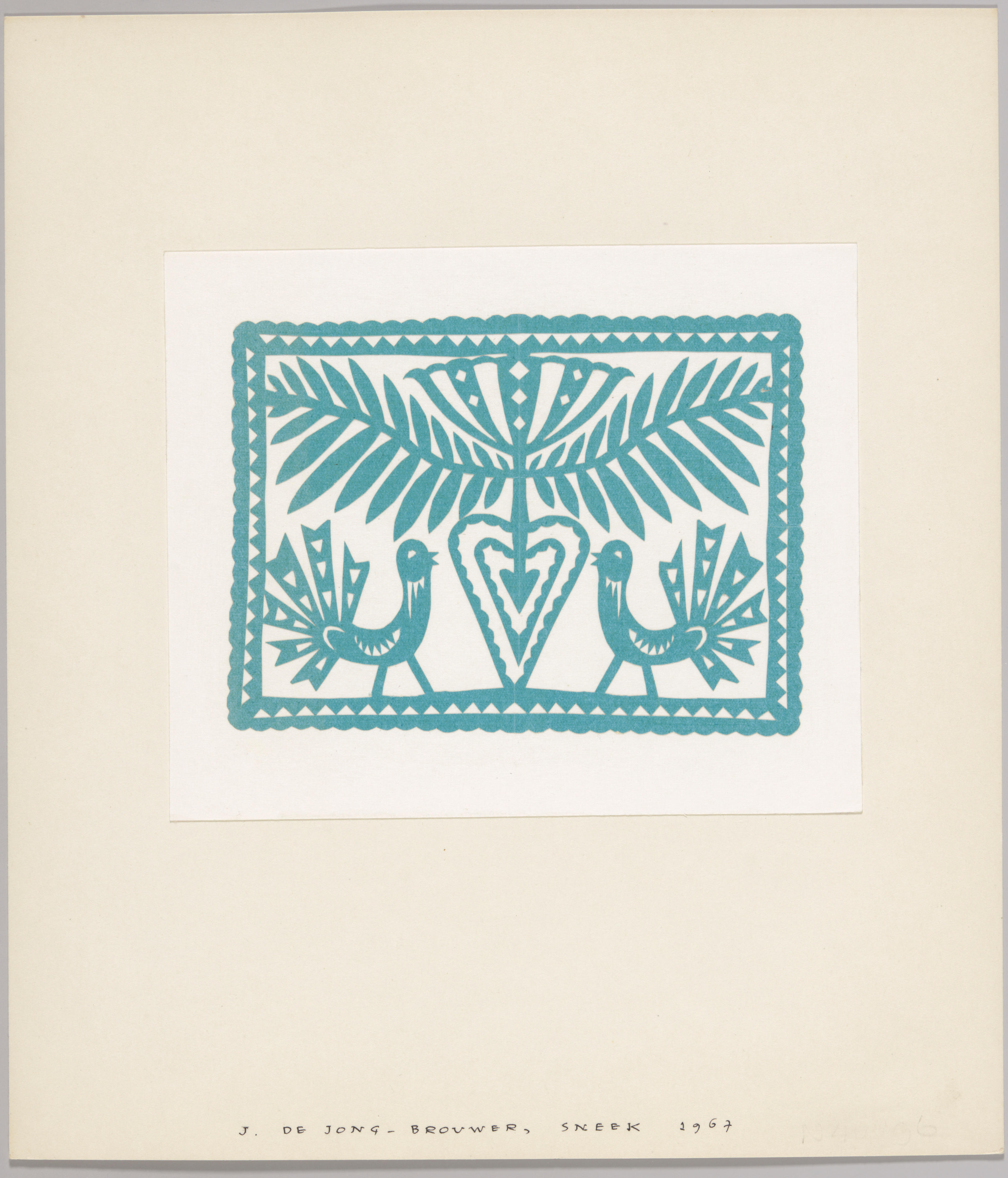 Knipwerk van bloem en twee pauwen, Sneek, 1967
