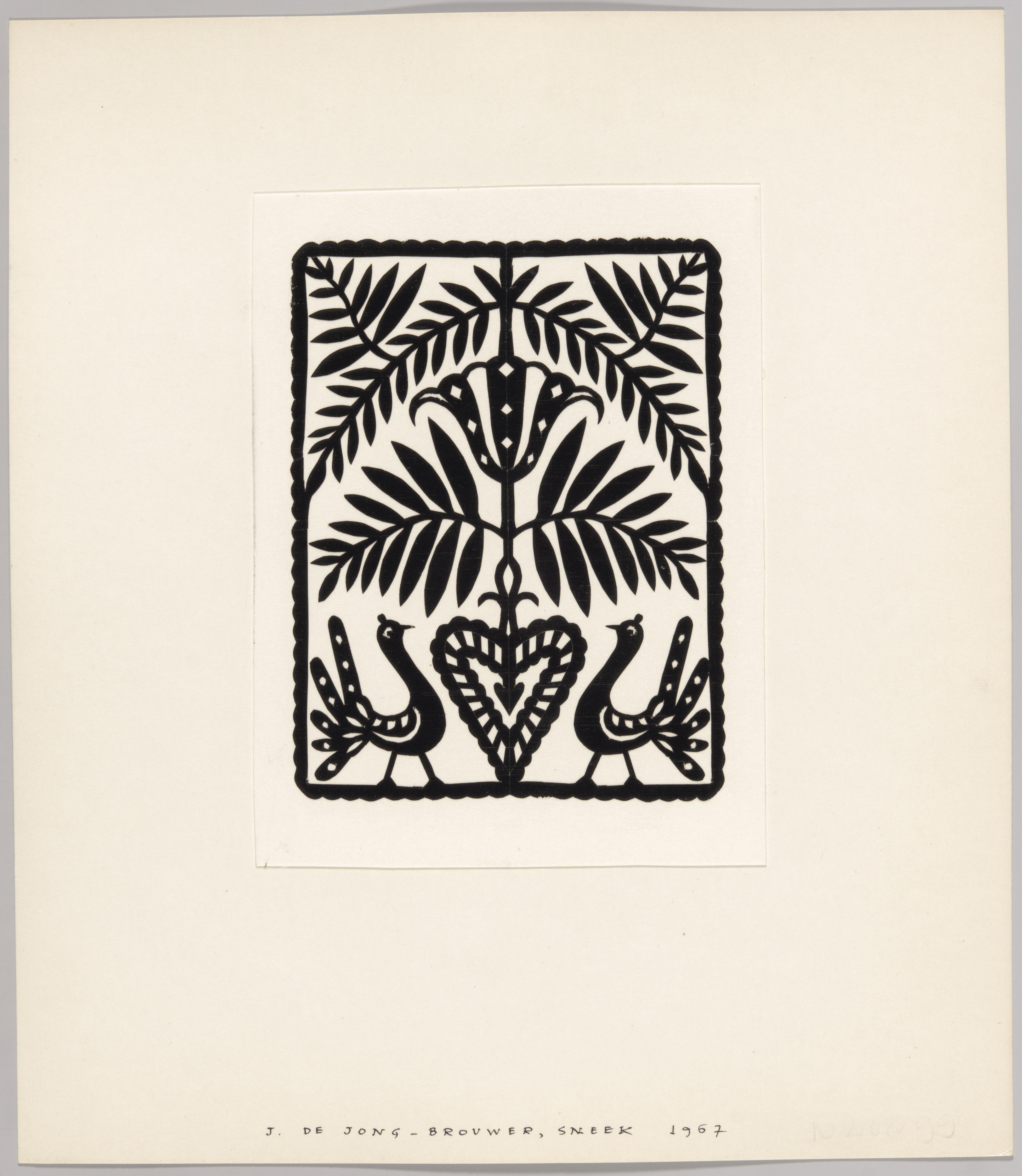 Knipwerk van een hart, bloem en twee pauwen, Sneek, 1967