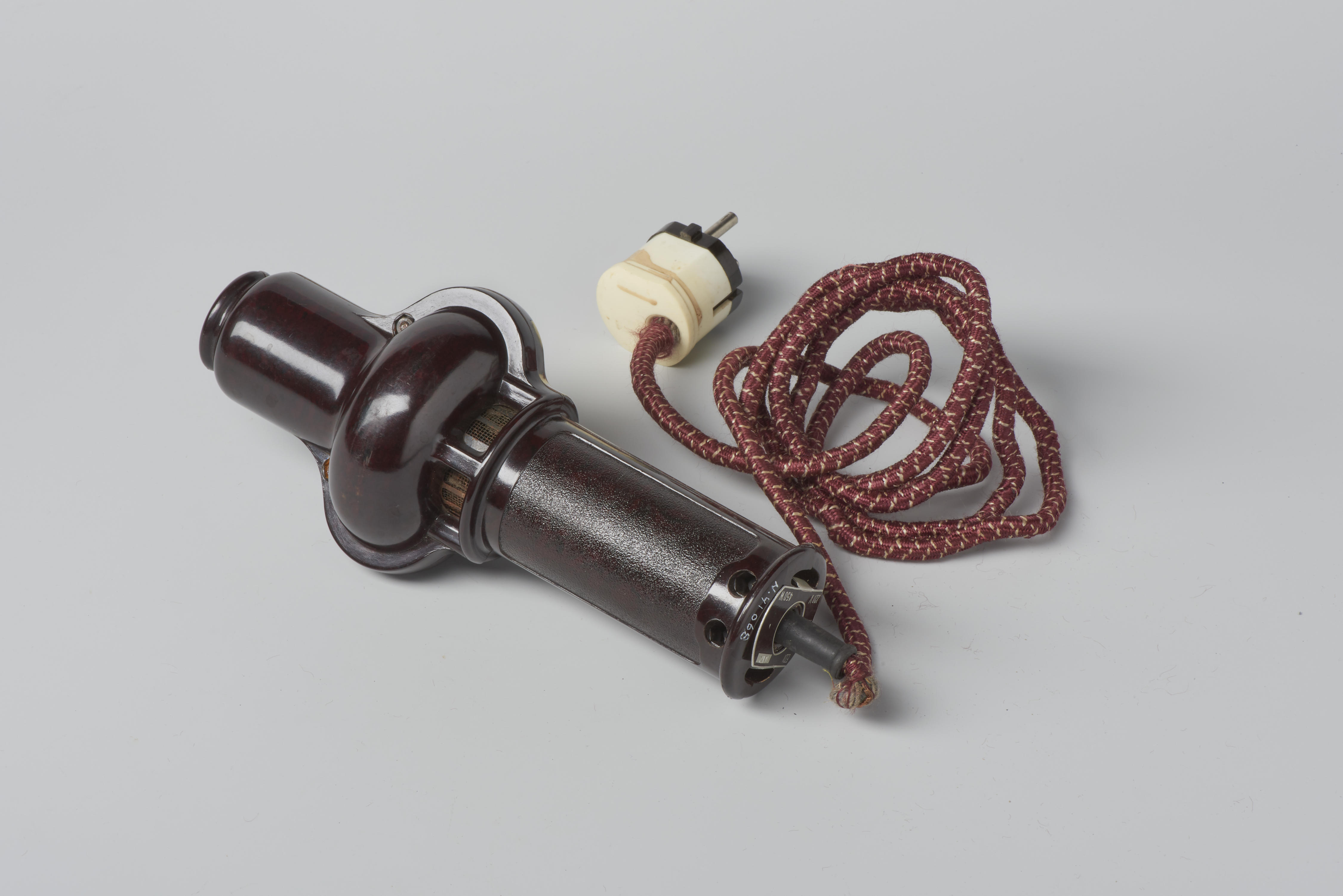 Bakelieten föhn, gemaakt door Siemens in Duitsland. De föhn is in 1936 ontworpen door Herbert Marloth.