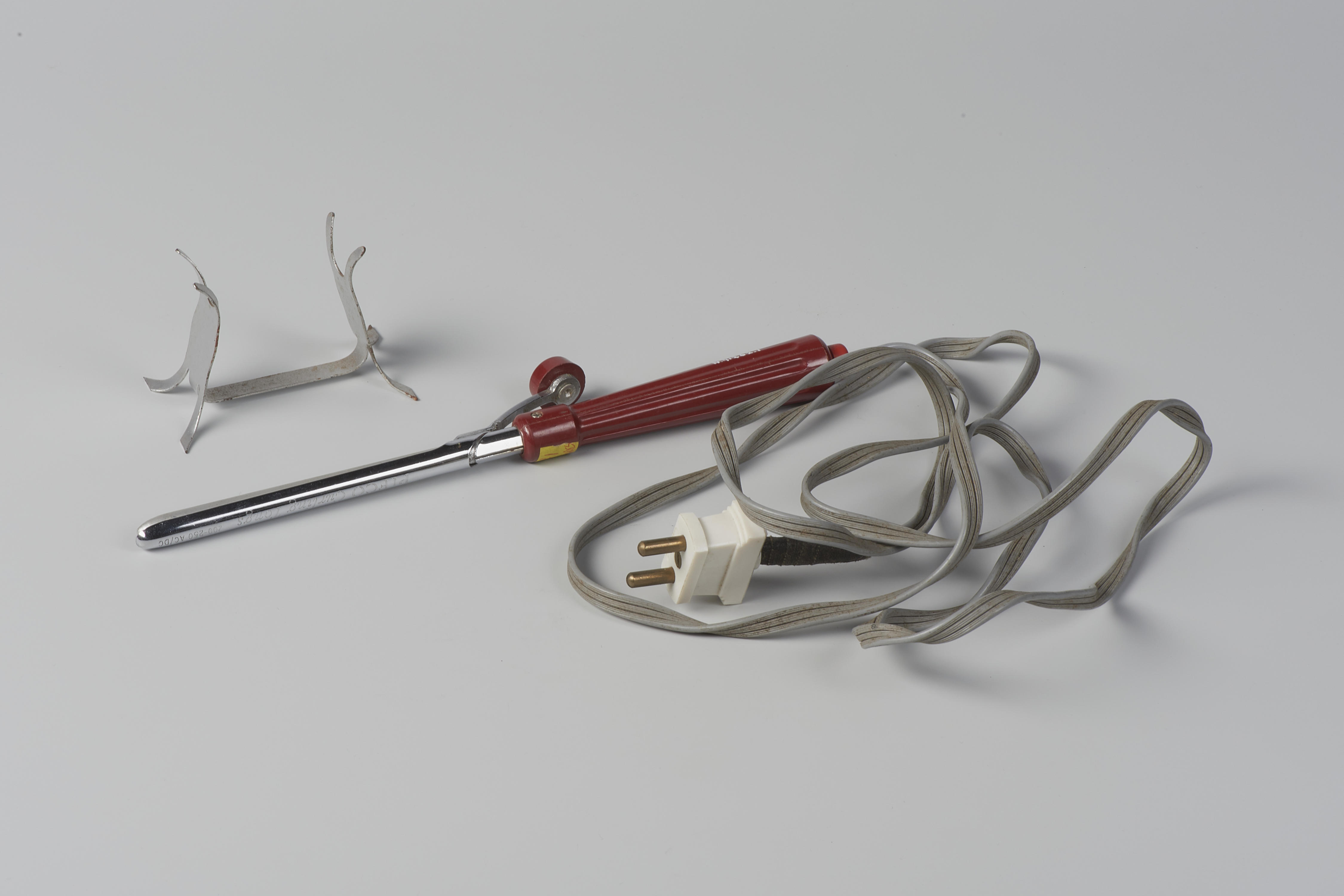 Bakelieten haarkrultang met houder, gemaakt door Pifco in Engeland.
