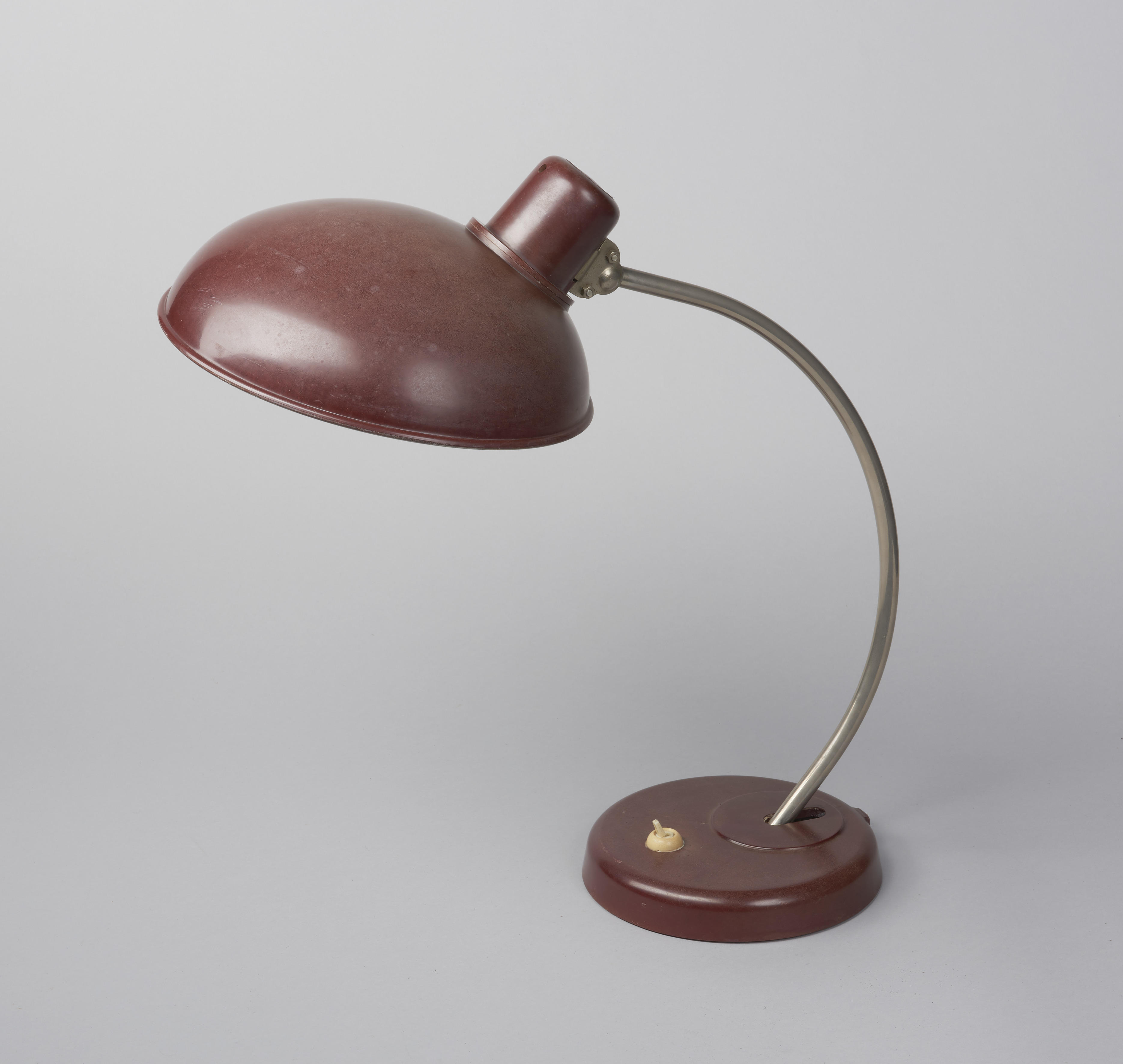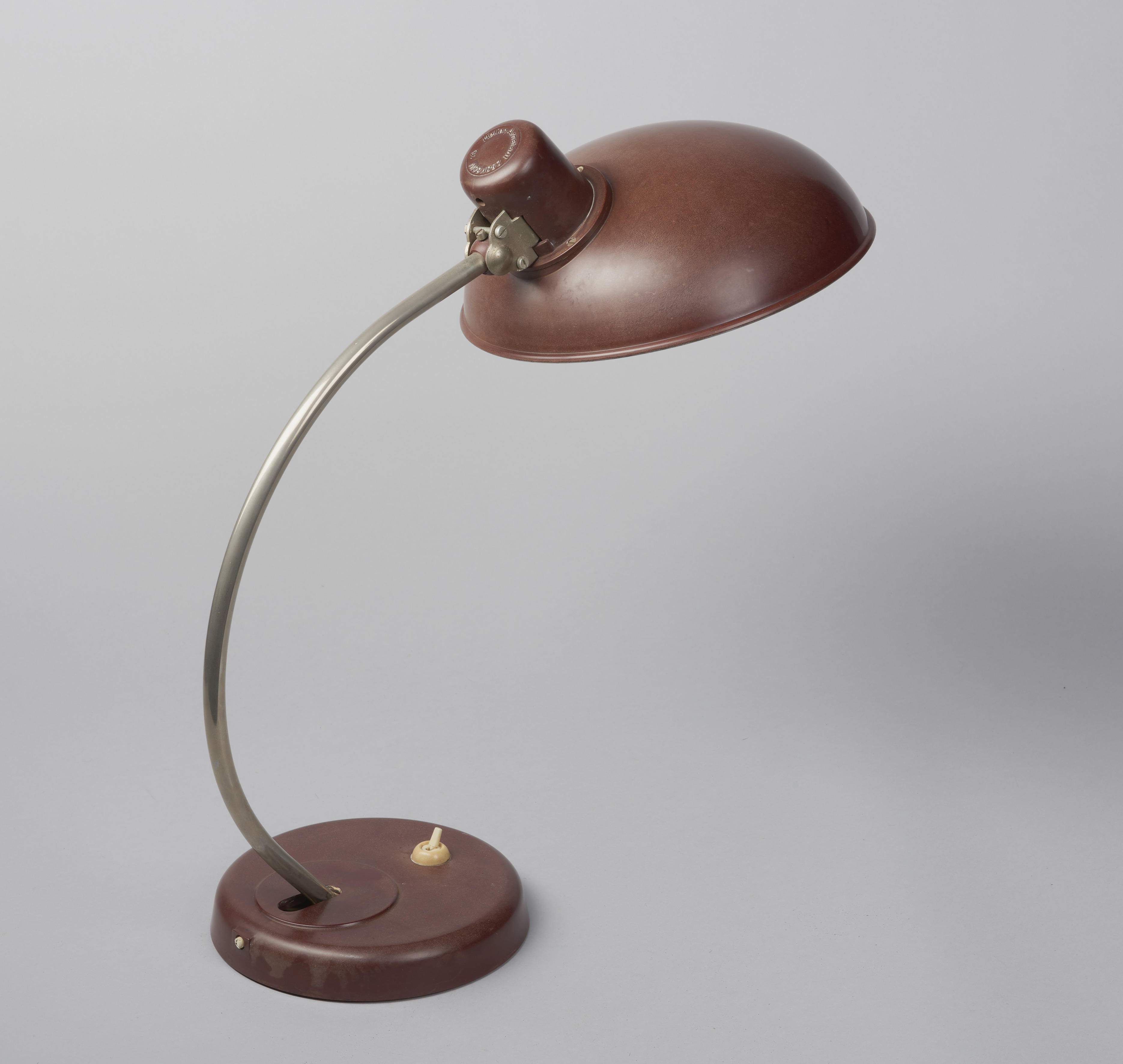 Bakelieten lamp Helion Arnstadt van de Duitse firma VEB Narva Artas. Aan de onderkant zit een kwaliteitsmerk en boven op het merkje Helion Arnstadt met bestelnummer 7923. Deze lamp is ontworpen en vervaardigd in de Duitse Bauhaus-periode omstreeks 1930.