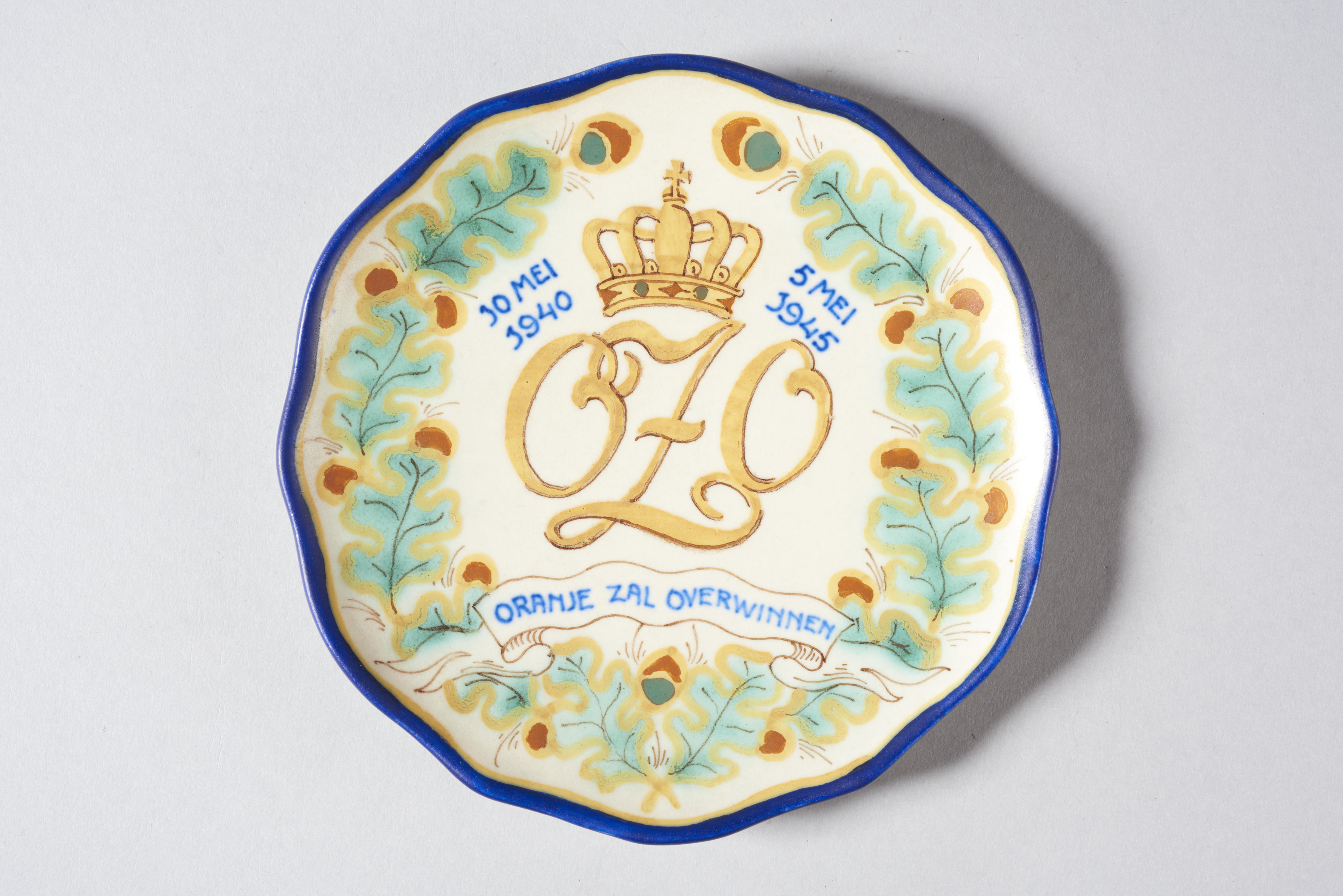 Gedenkbord, vervaardigd ter herinnering aan de Tweede Wereldoorlog in Nederland. In het midden van het bord staan de gekroonde letters ‘OZO’. Links van de letters staat de datering ’10 mei 1940’ en rechts ‘5 mei 1945’. Onder de gekroonde letters is op een banderol de tekst te lezen: ‘Oranje zal overwinnen’. Het bord is verder ...