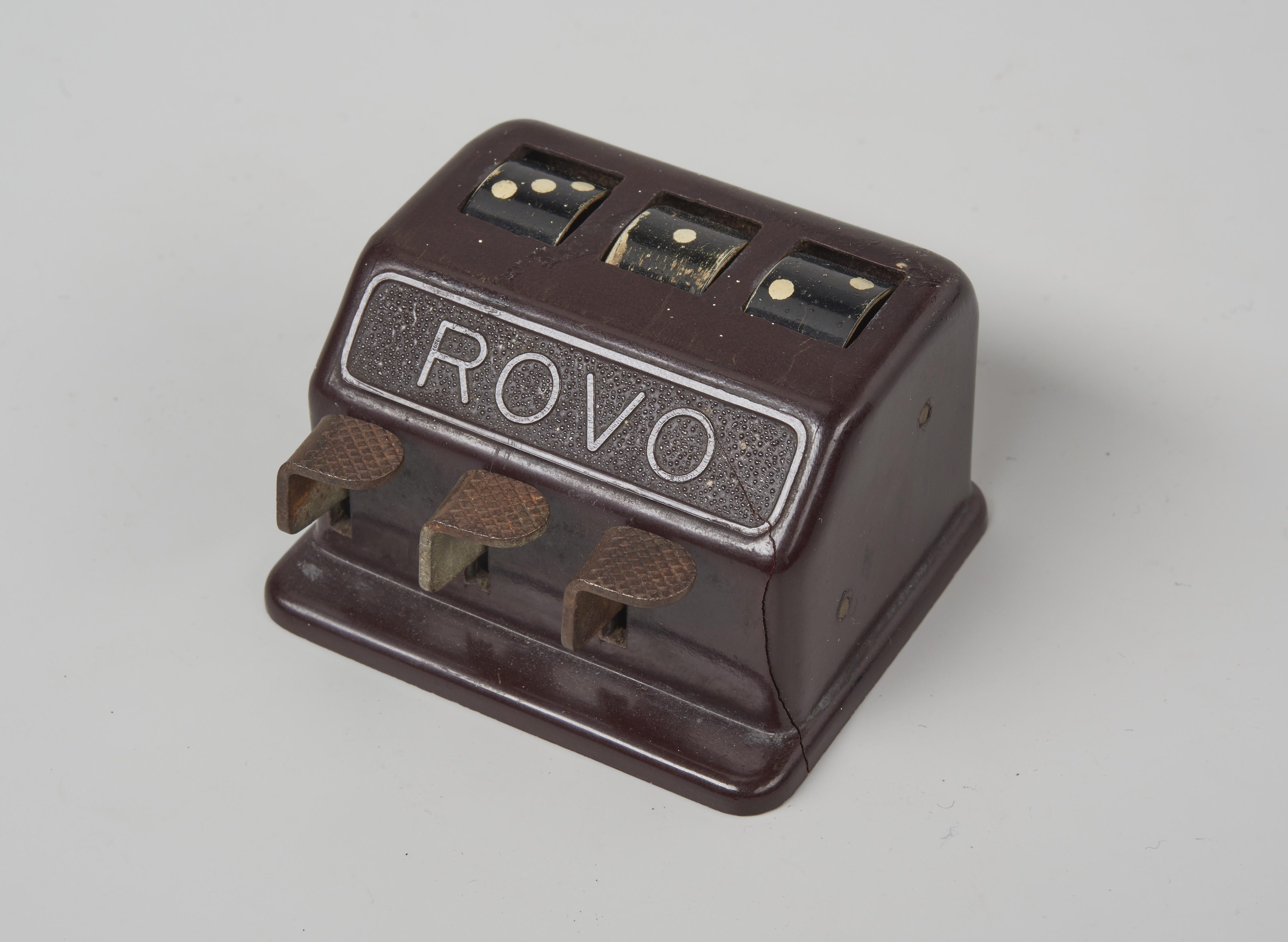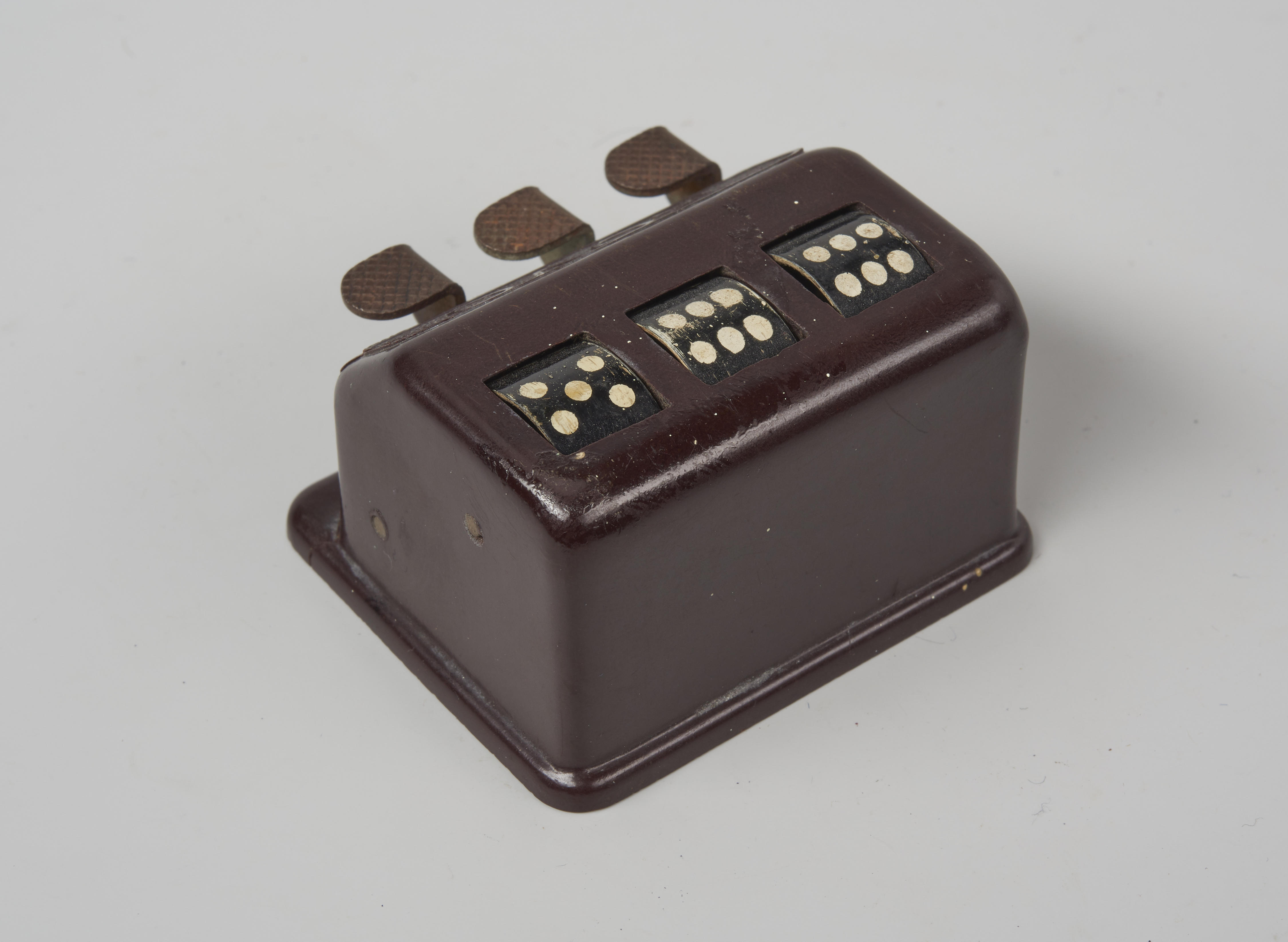 Bakelieten dobbelsteenautomaat, gemaakt door ROVO in Leipzig, Duitsland.