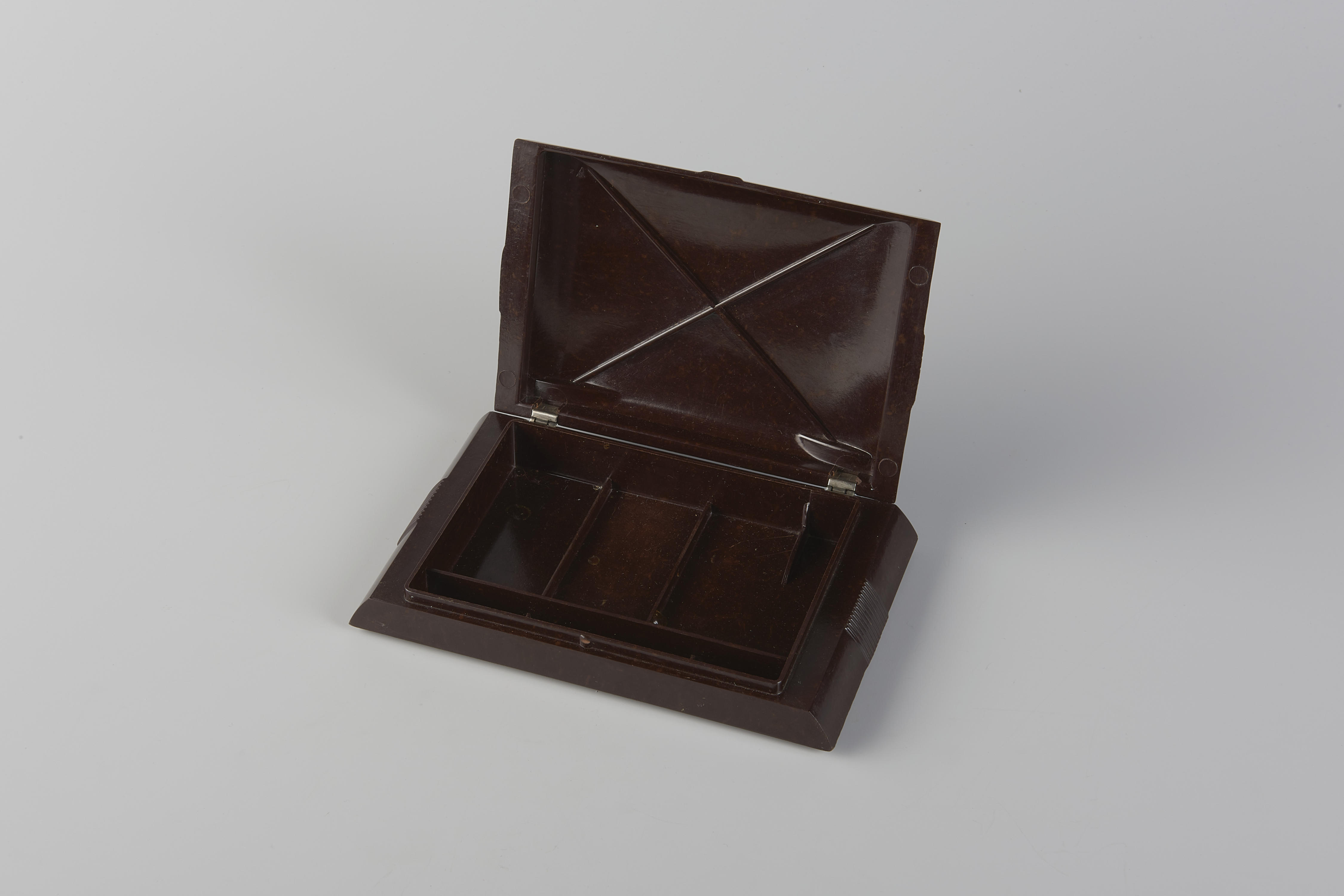 Bakelieten doos voor het opbergen van nagelverzorgingsproducten, gemaakt door Cutex.