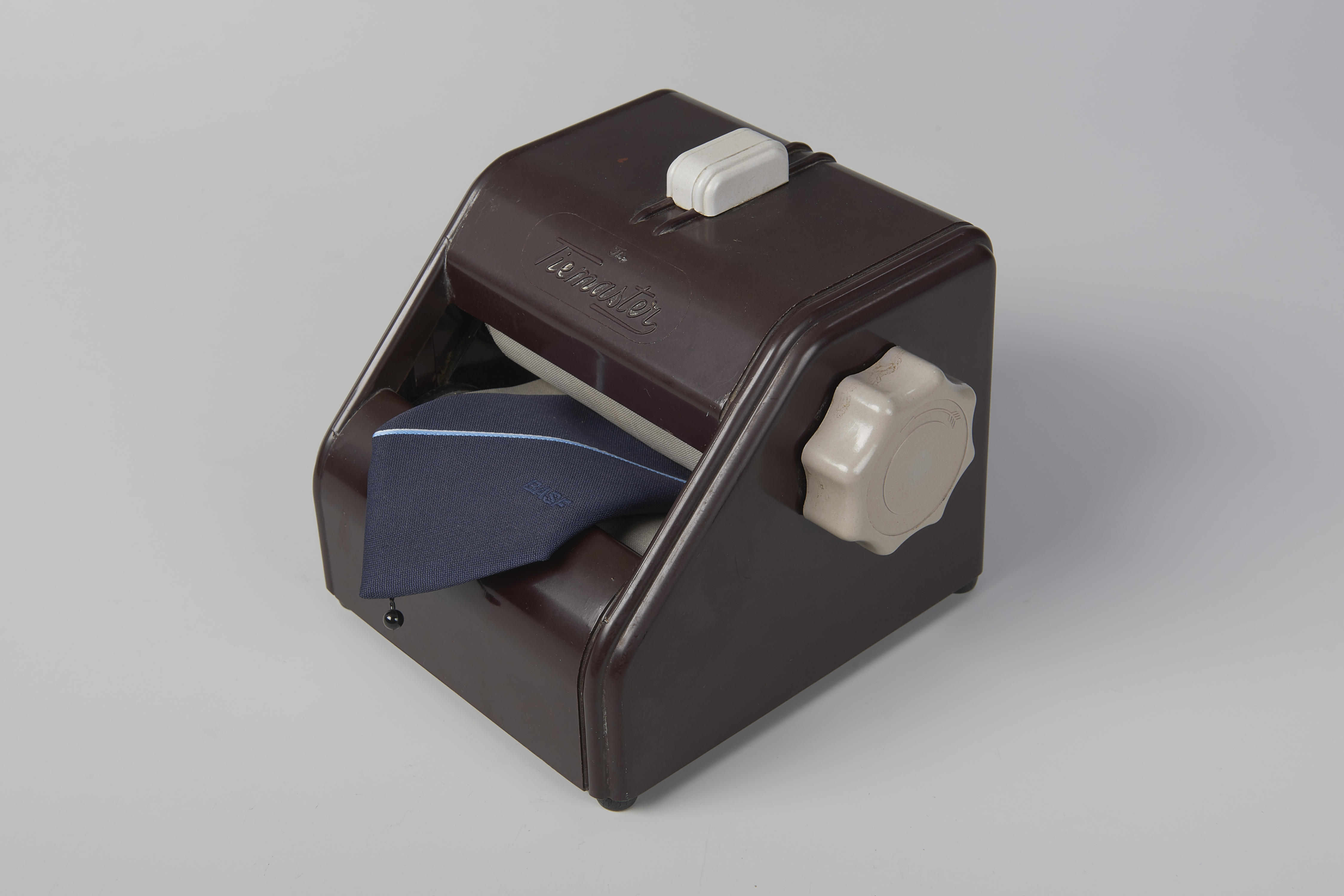 Bakelieten dassenpers 'The Tiemaster'. De pers is gemaakt door John Corby in Windsor, Engeland.