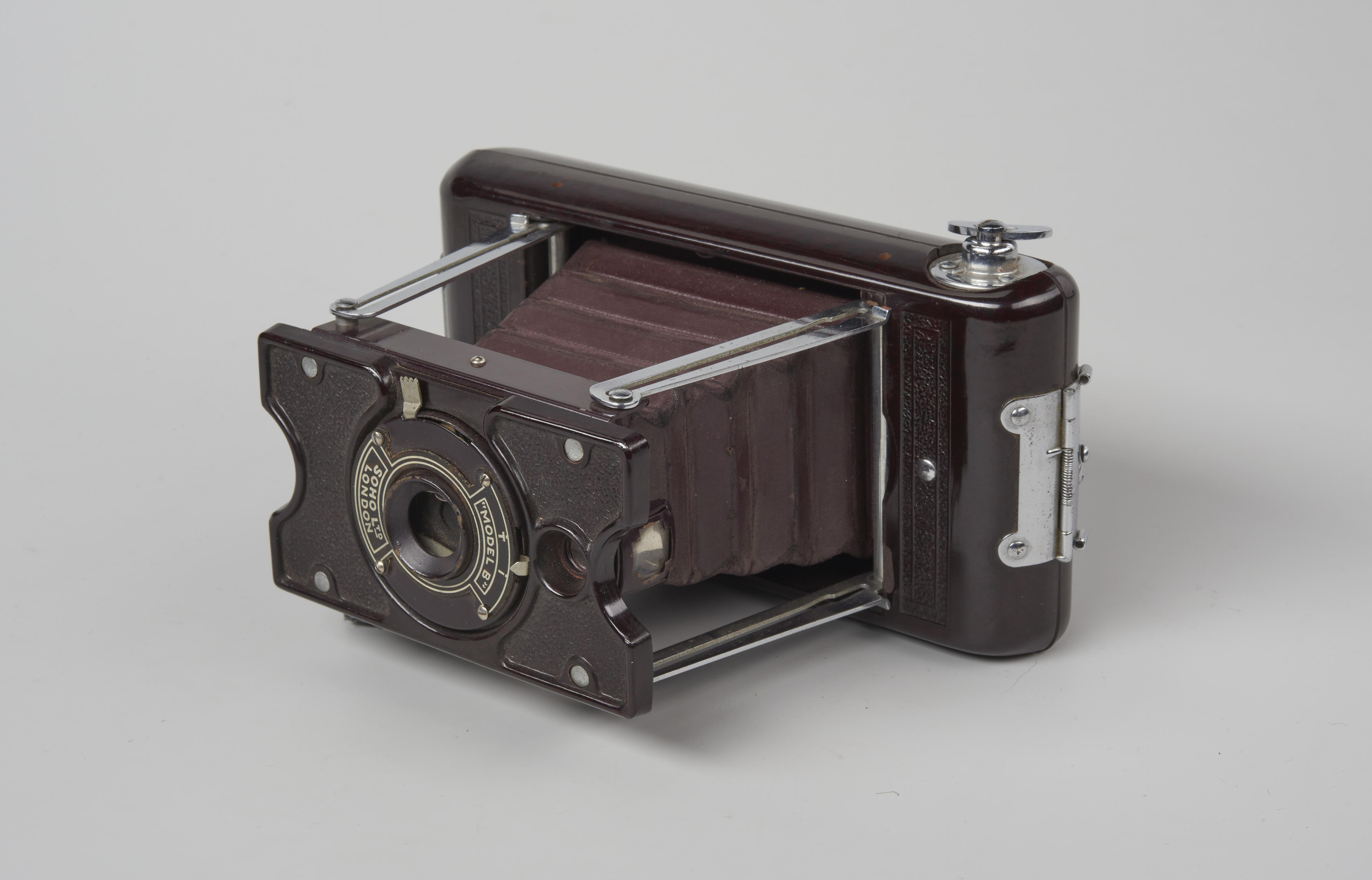 Bakelieten balgcamera van het type Model B, gemaakt door Soho Ltd in Londen, Engeland.