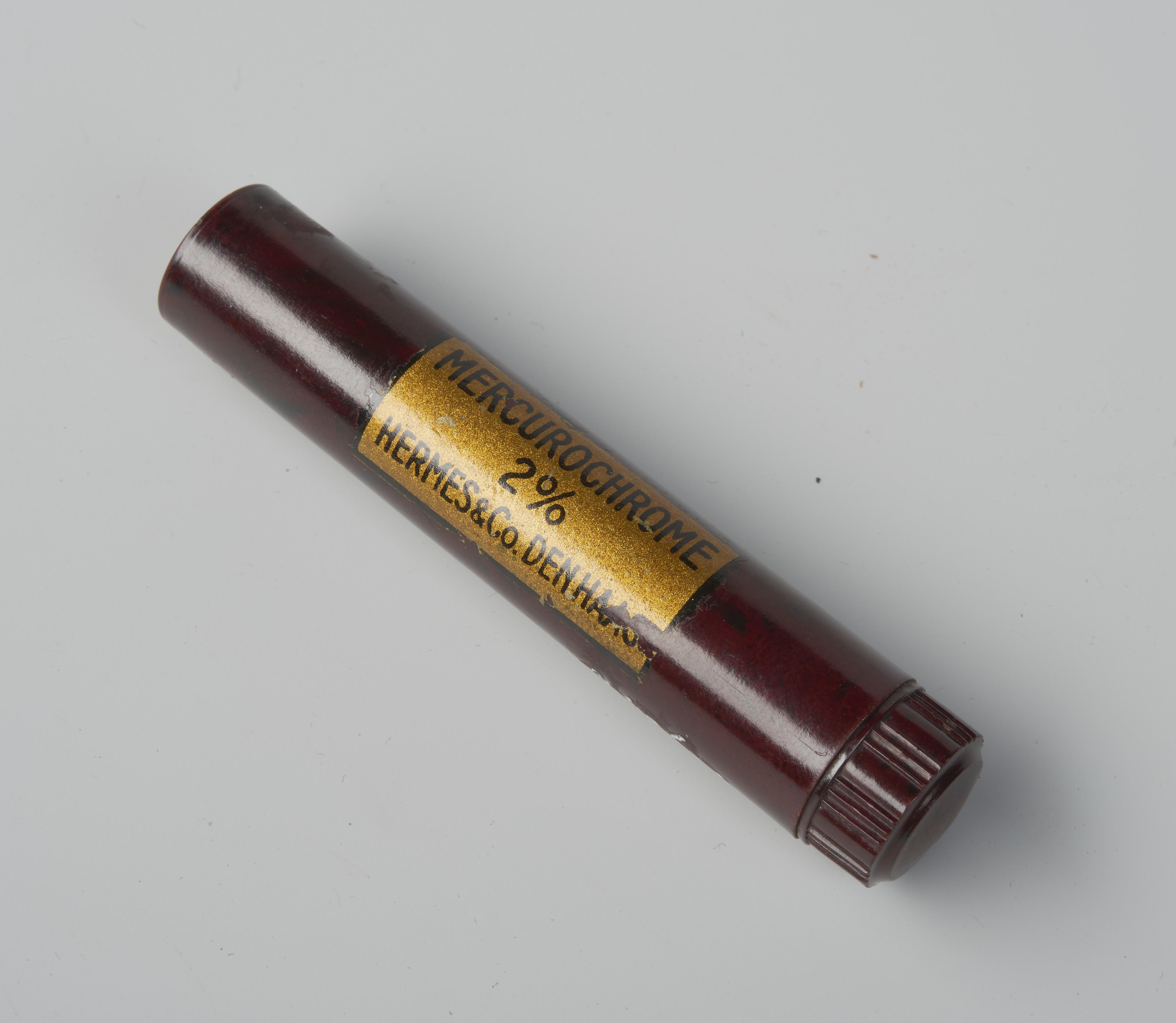 Buisje mercurochrome 2% (ontsmettingsmiddel), afkomstig van Hermes & Co. in Den Haag.