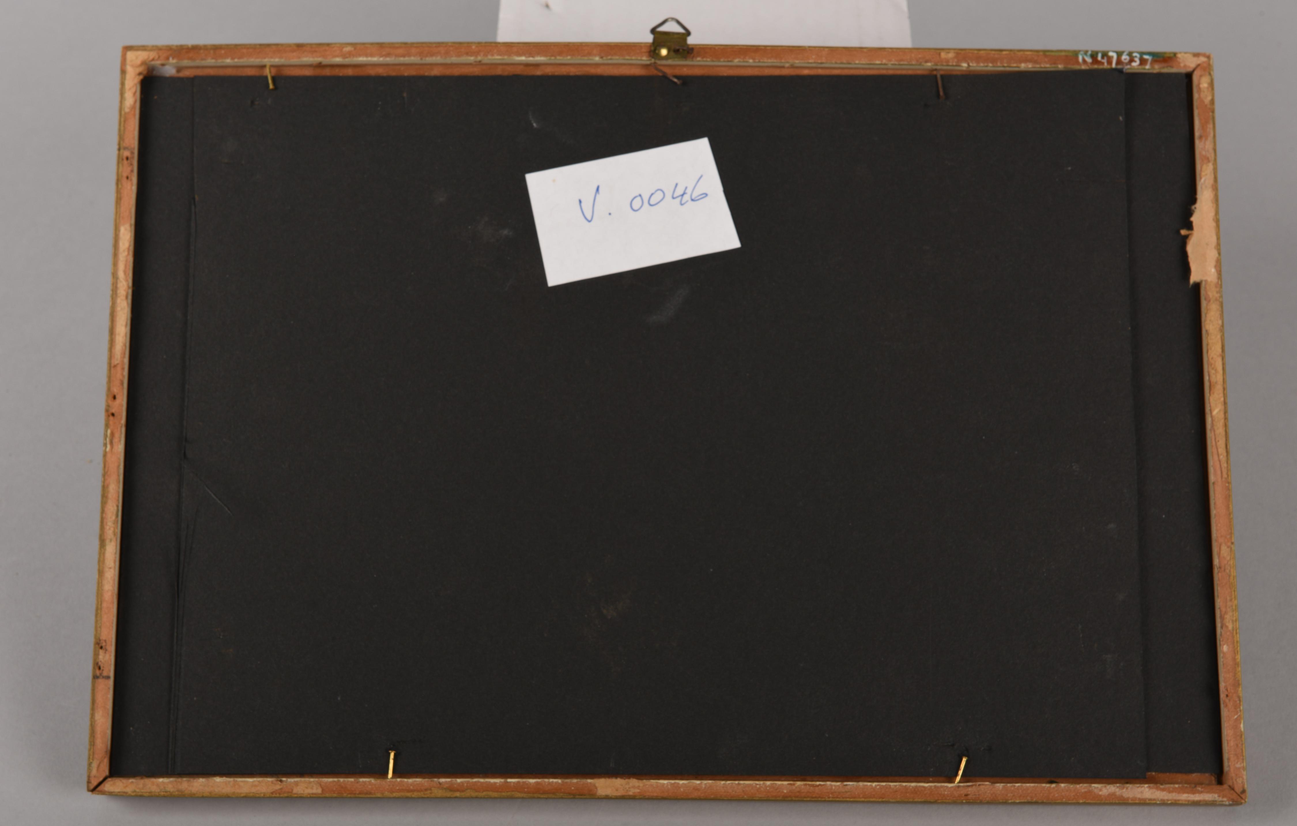 Knipwerk van een landelijk tafereel met een gebouw, een wandelend paar, hertenjacht, visser, twee mensen in een roeiboot en een vrachtschip met een brede, dubbelgeknipte omlijsting met rondom bloemranken die ontspringen aan een vaas in het midden onderaan het knipsel. Tussen de bloemen in het kader rondom zijn een vrouwenfiguur (links en rechts) en tweemaal ...