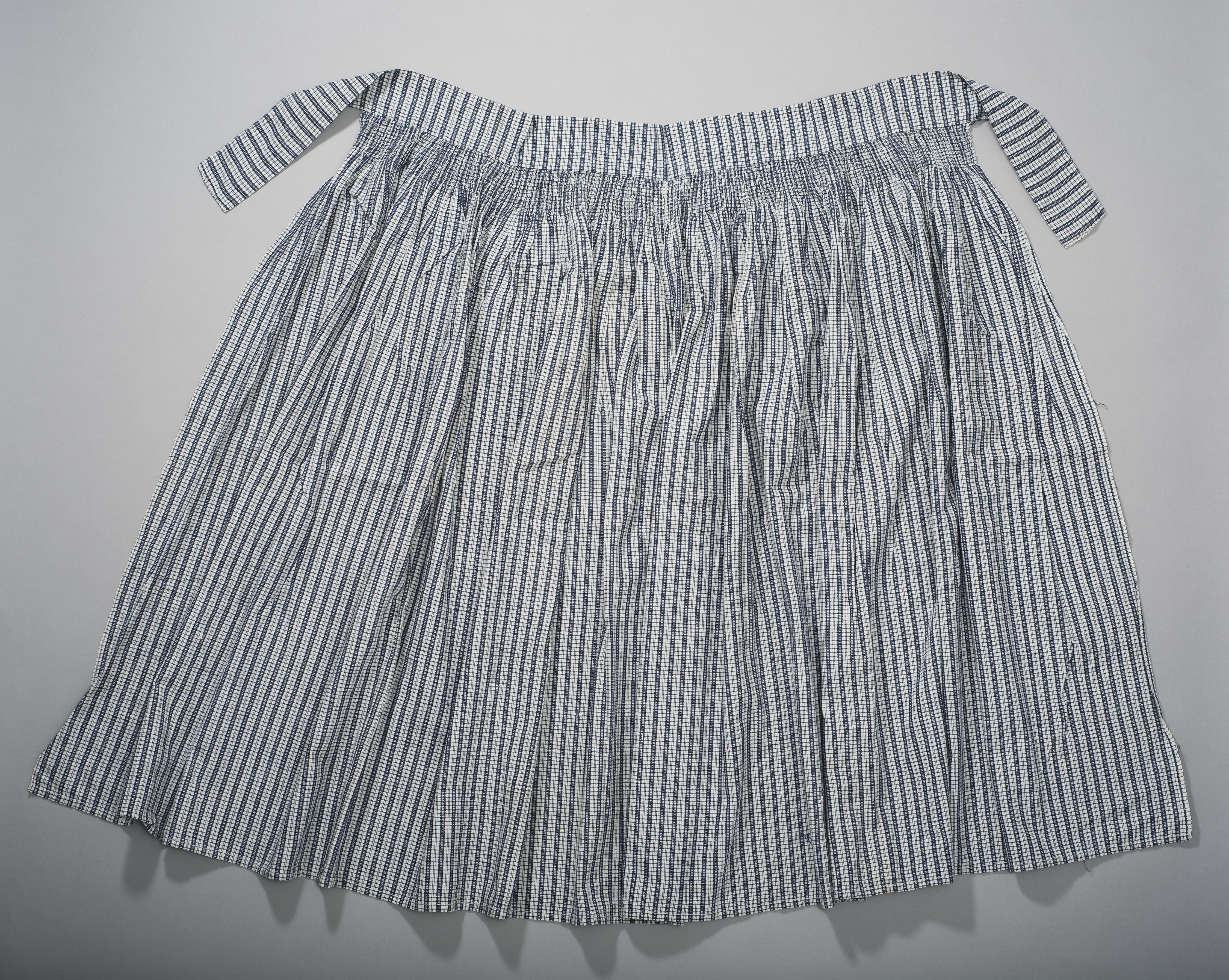 Blauwwit geruit kinderschort, gedragen door een meisje op Walcheren.