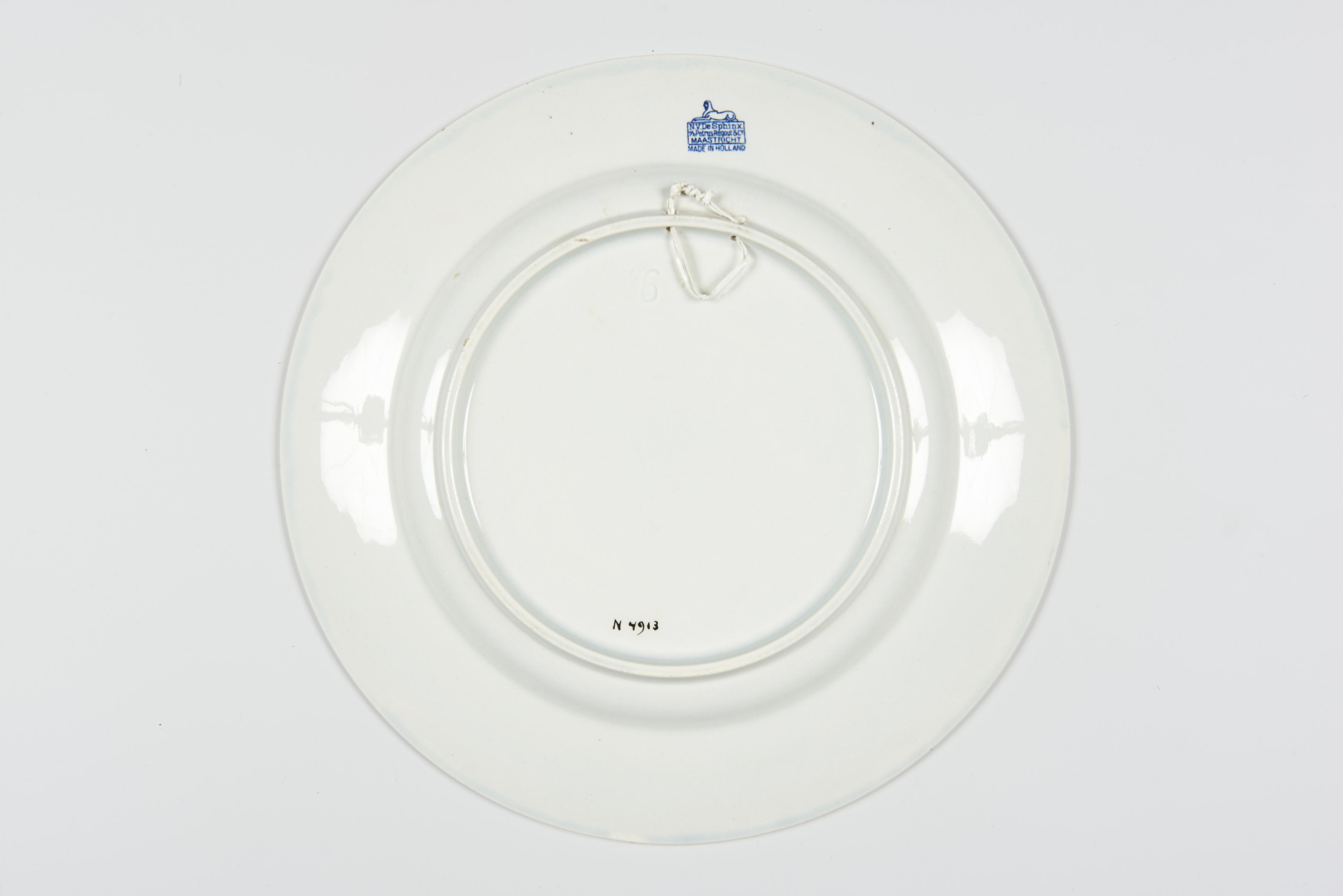 Wandbord, uitgebracht ter gelegenheid van het vijfendertigjarig bestaan van de N.V. Zeepfabrieken v/h De Haas en Van Brero in Apeldoorn. Op het middenvlak staan een boek, bloem en opkomende zon afgebeeld.