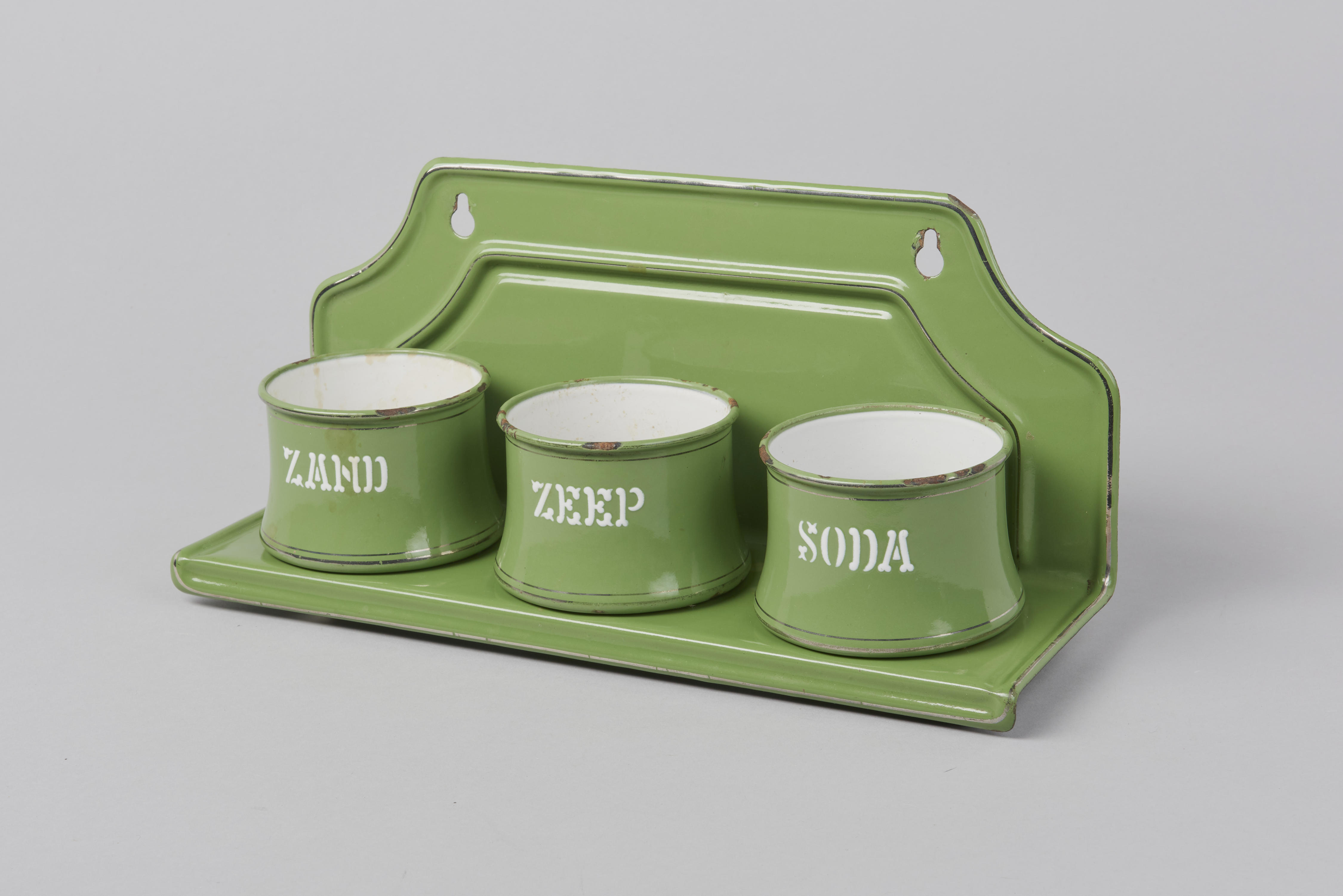Tot in de jaren 1960 werd voor zowel de afwas, de was, de vloer als de keuken groene zeep gebruikt. Als iets heel vuil was, kreeg het eerst een behandeling met soda (natriumcarbonaat). Als zelfs zeep en soda het niet schoon kregen, bijvoorbeeld omdat een pan al te zeer was aangekoekt, kwam fijn schuurzand van ...