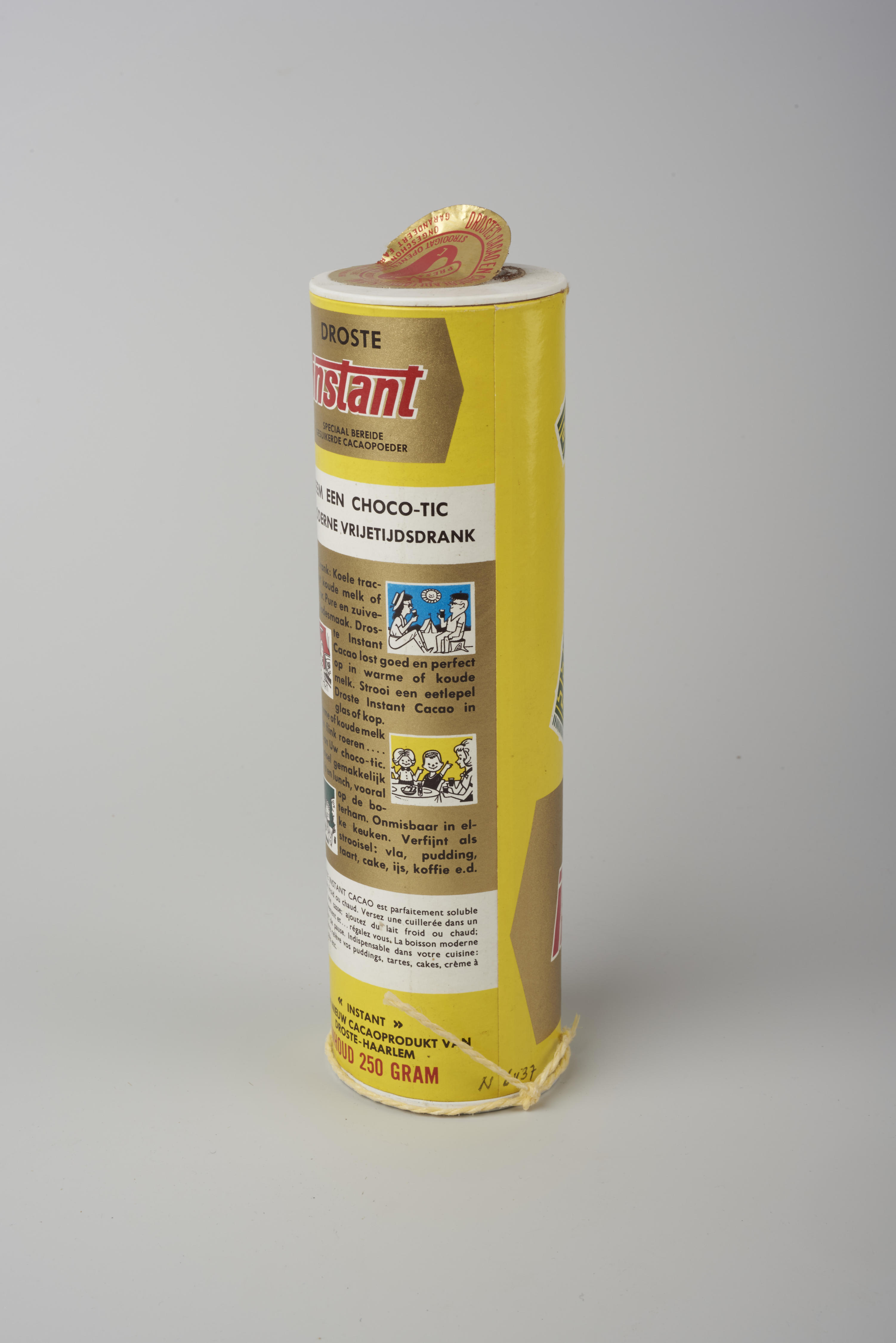 Etalagekoker voor cacaopoeder van het merk Droste.