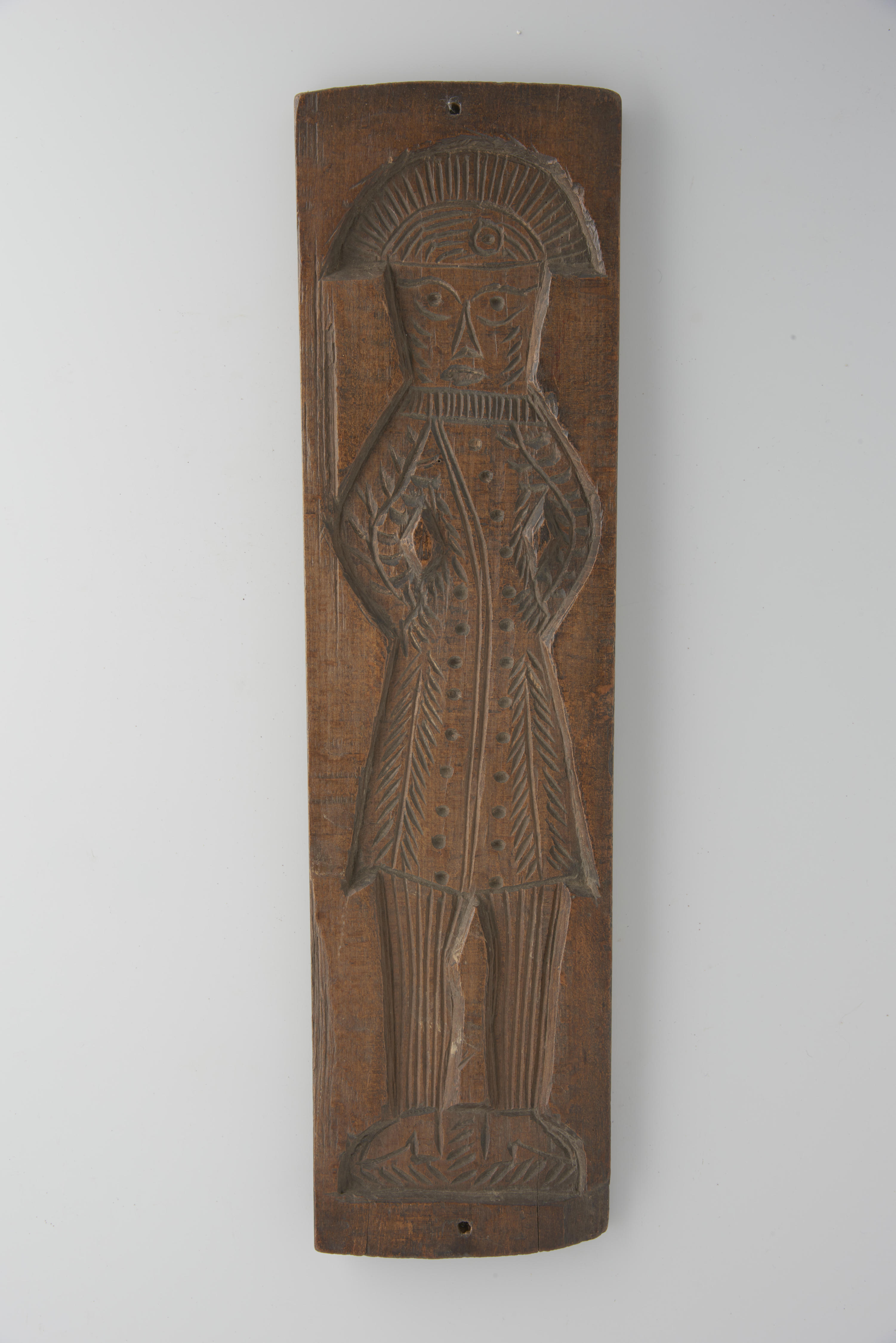 Beukenhouten koekplank, aan één zijde besneden met een mansfiguur.