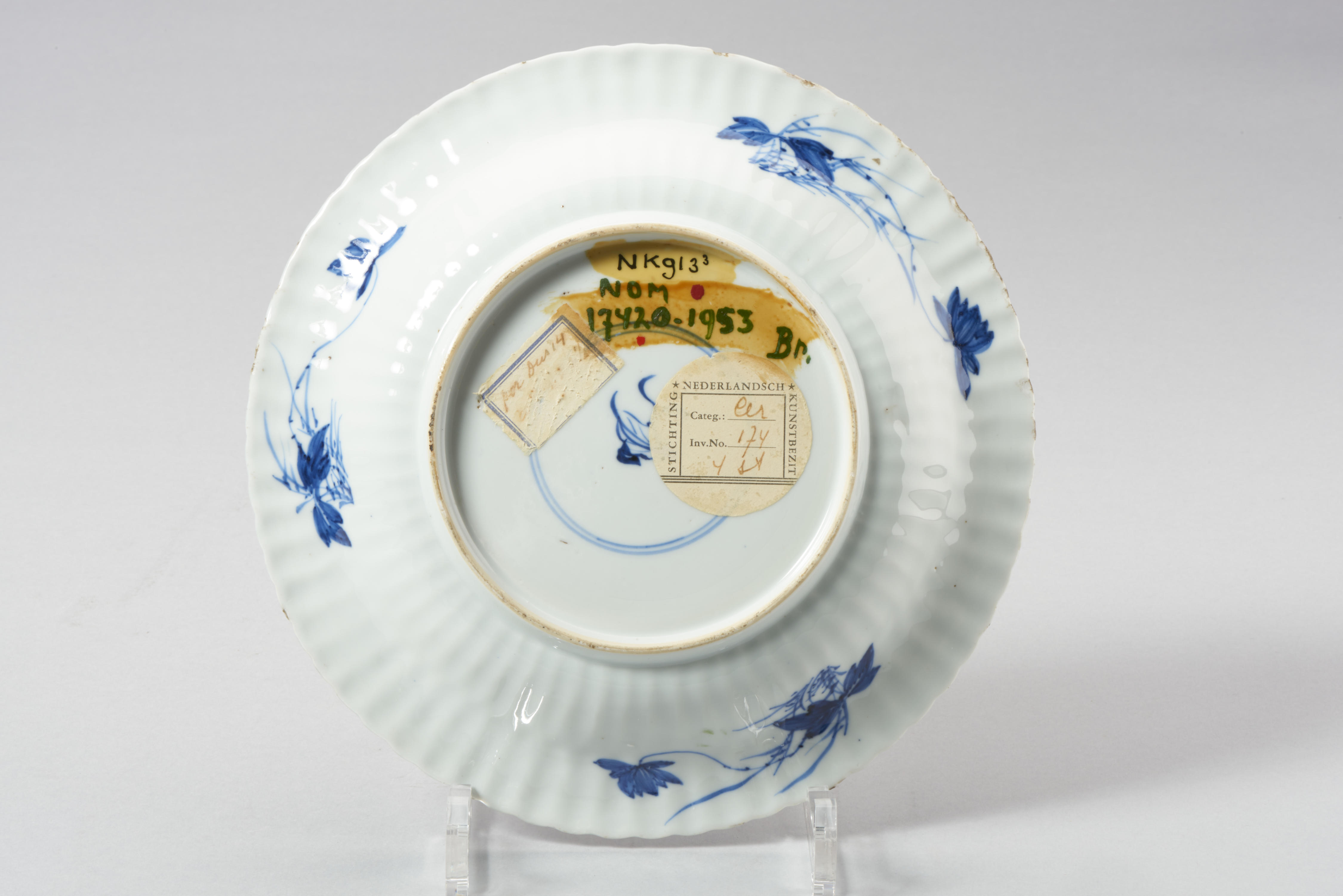 Bord, versierd met bloem- en takmotieven. Met zekerheid of grote waarschijnlijkheid is dit voorwerp in de periode van WO II door roof, confiscatie of gedwongen verkoop aan de Joodse oorspronkelijke eigenaar afhandig gemaakt. Ondanks intensief speurwerk kunnen geen rechthebbenden worden aangewezen.