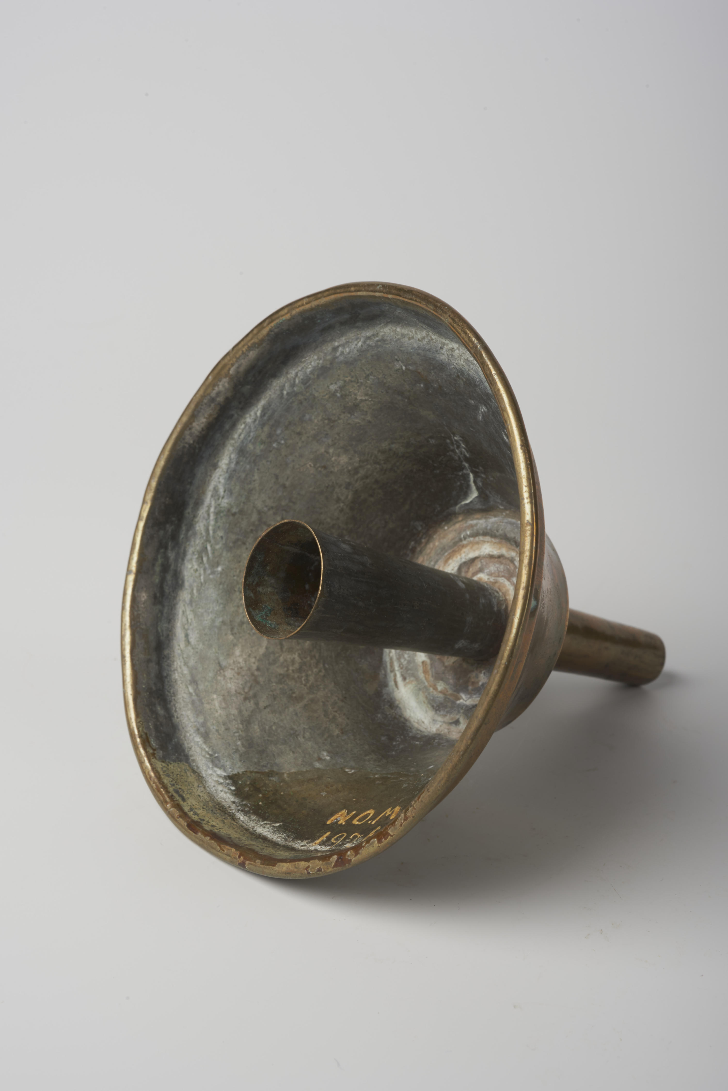 Messing spinbakje, gebruikt voor het spinsel van het spinnewiel.