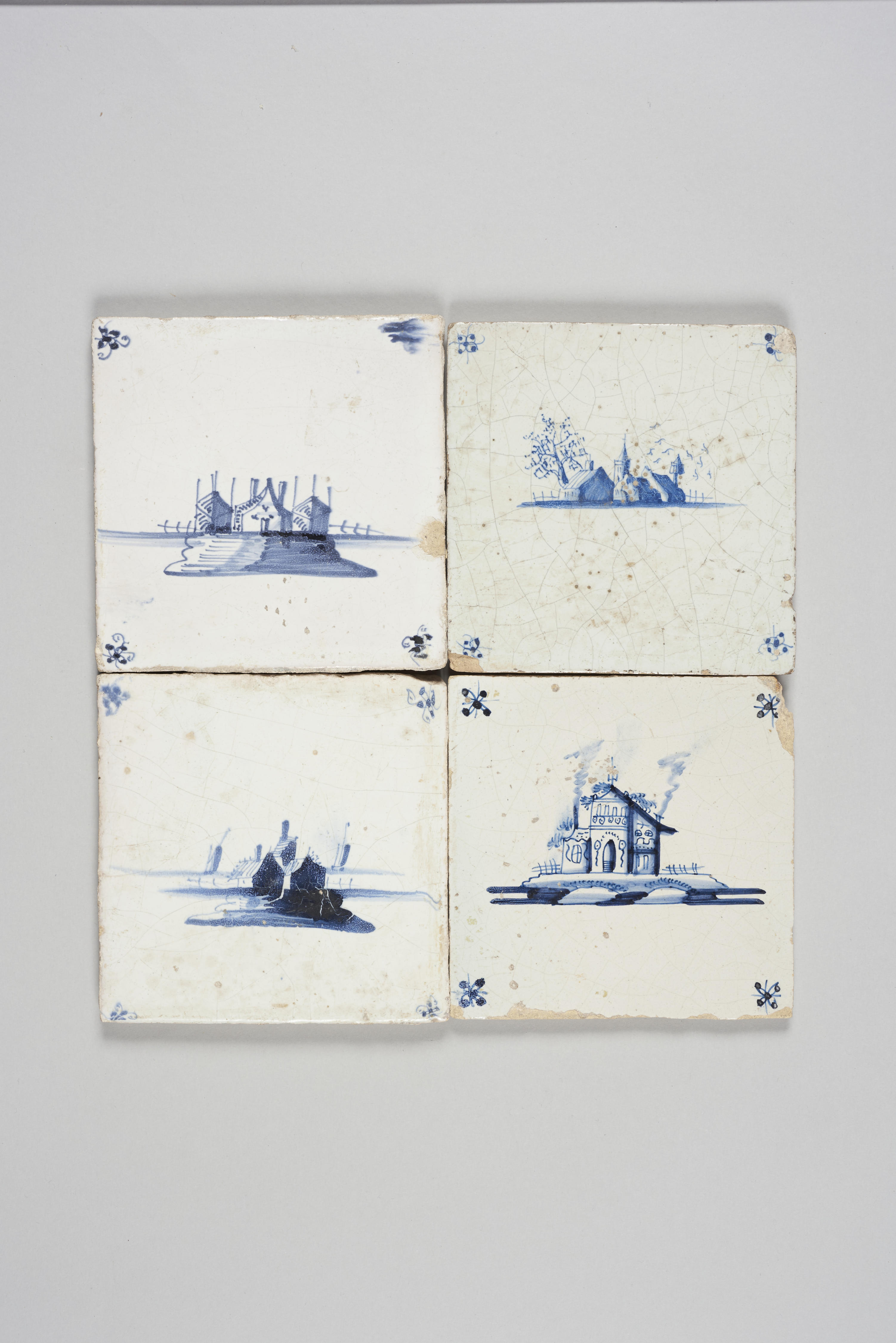 Vier wandtegels met afbeelding gebouw, 1680–1900