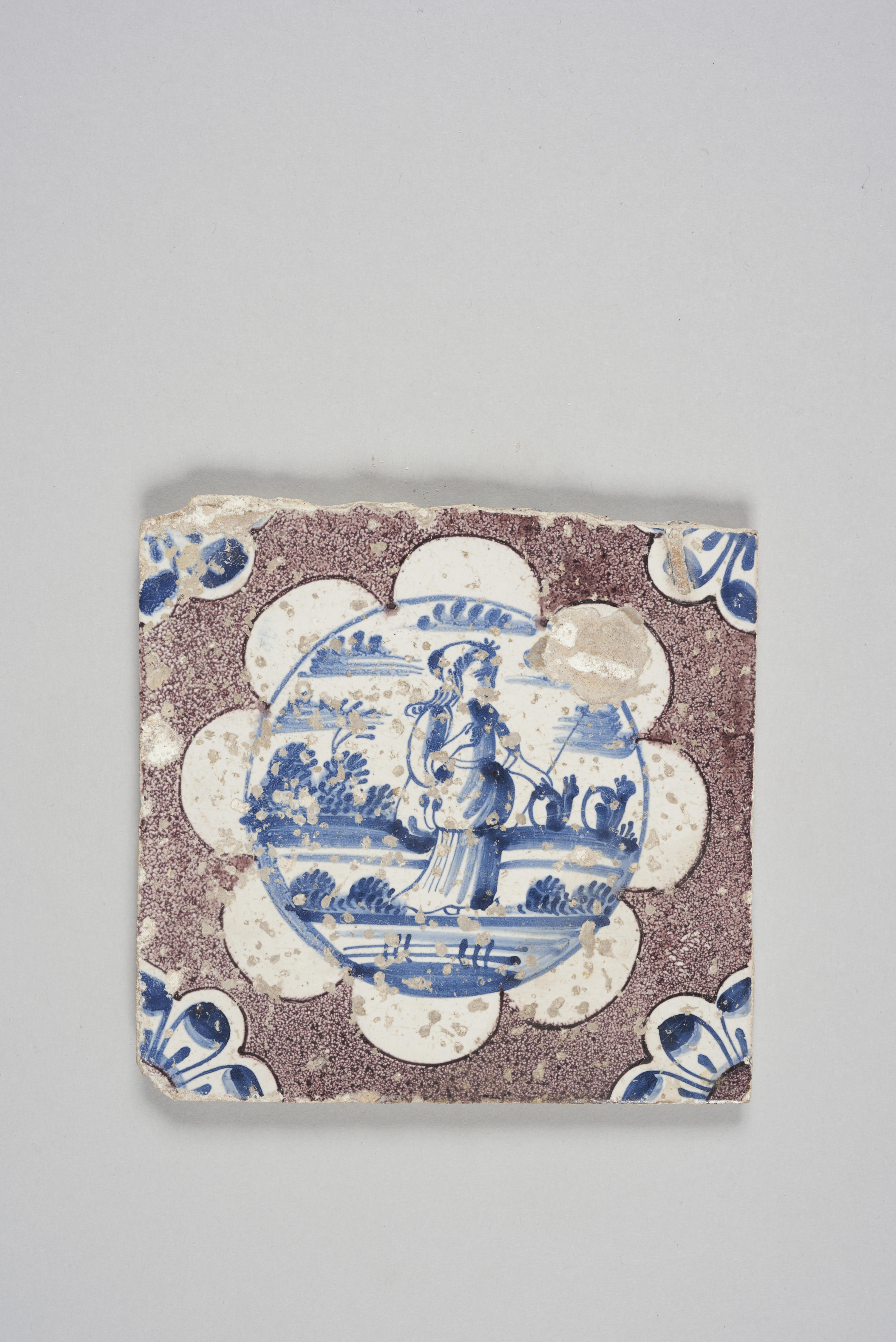Wandtegel met afbeelding herderin in cirkel, 1675–1800