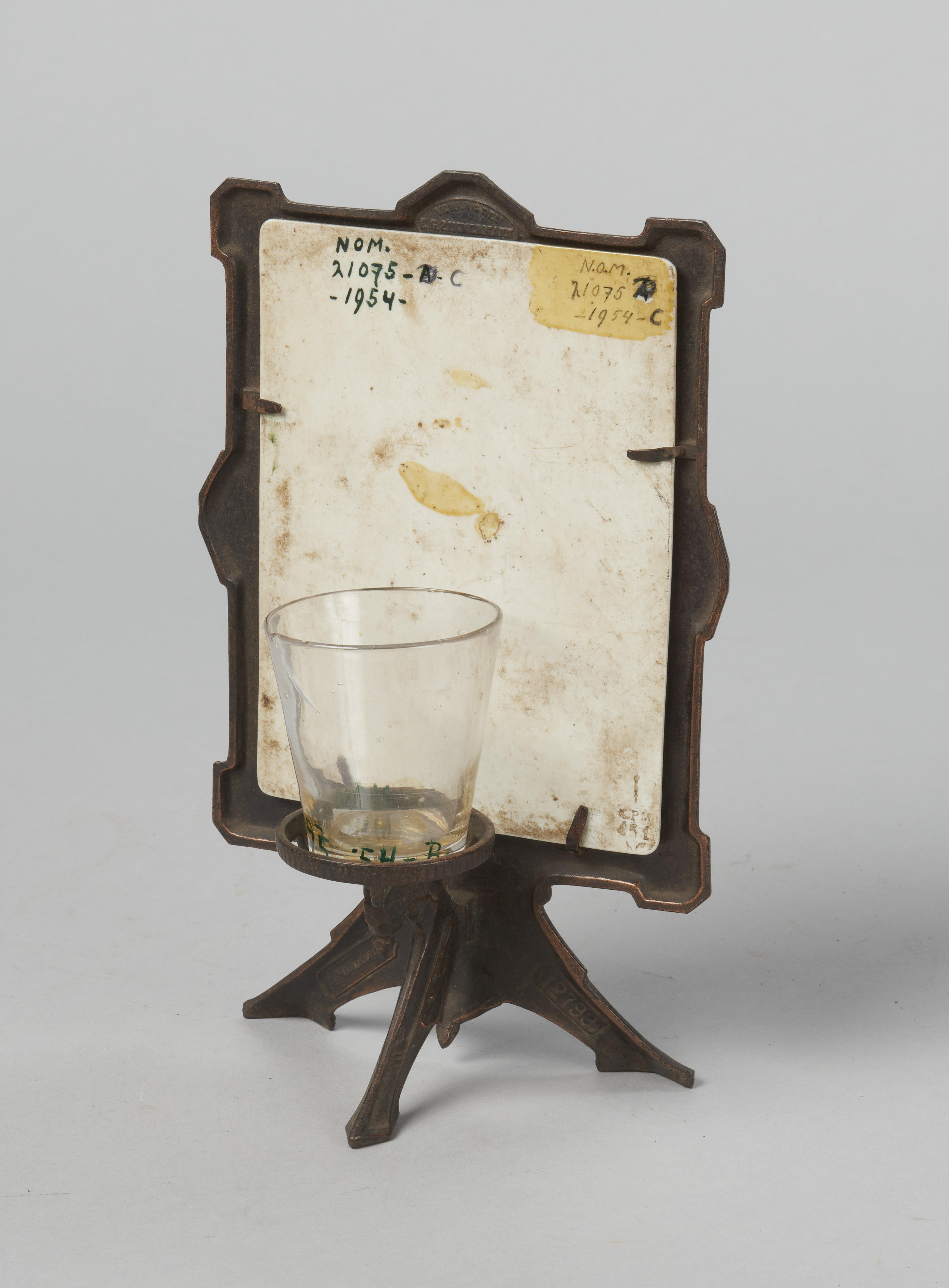 Lithofanie komt van het Griekse λίθος (lithos), dat 'steen' betekent en φαίνειν (phainein), ofwel 'verlichten, verschijnen'. De gietporseleinen plaquette is gemonteerd in een metalen raam op een voetje. Achter de plaquette staat een handgeblazen glaasje. Hierin zat olie en dreef een lontje. Eenmaal brandend toonde de lamp een voorstelling van een vrouw op een stenen ...