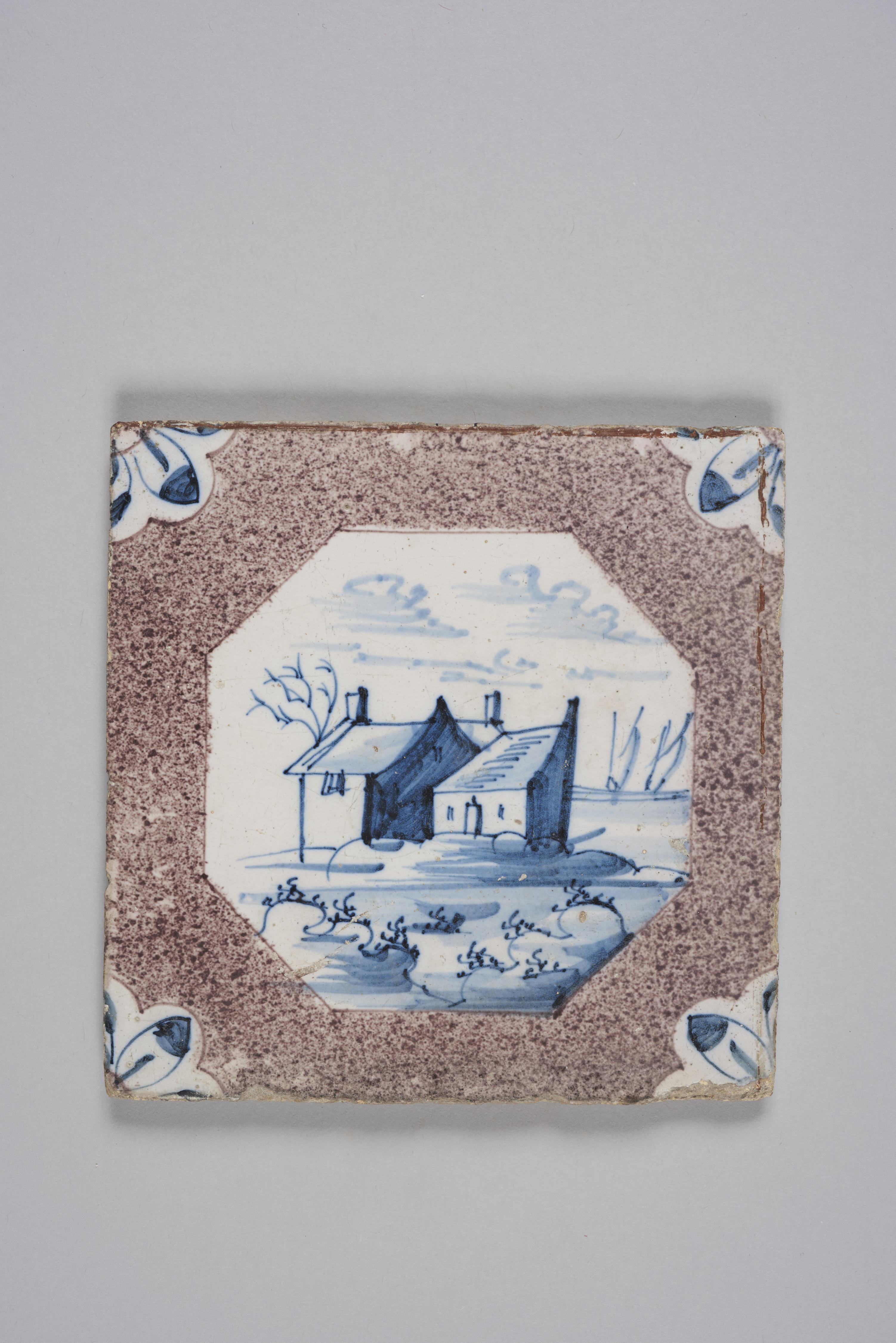 Wandtegel met afbeelding landschap in achtkant, 1660–1880