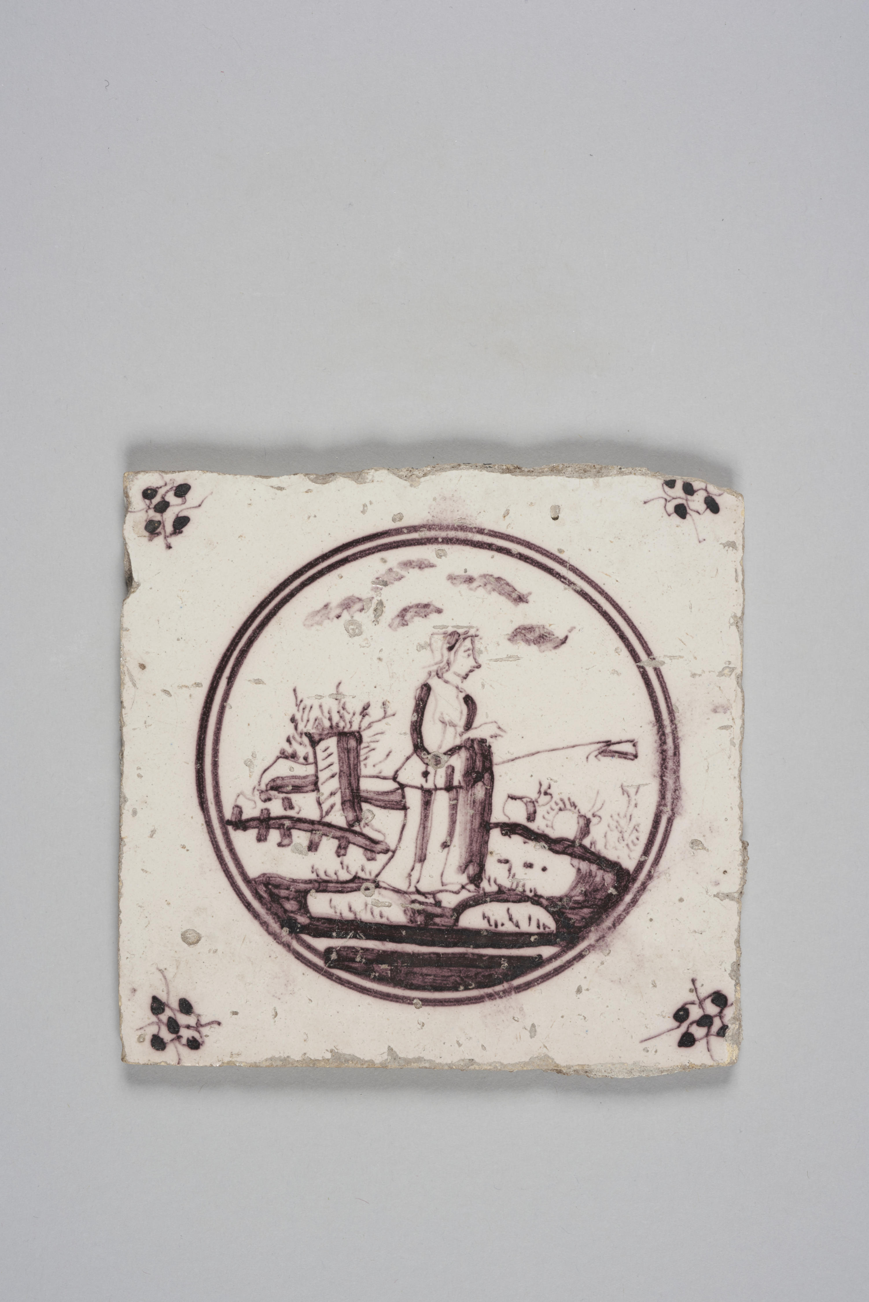 Wandtegel met afbeelding herderin in cirkel, 1660–1800
