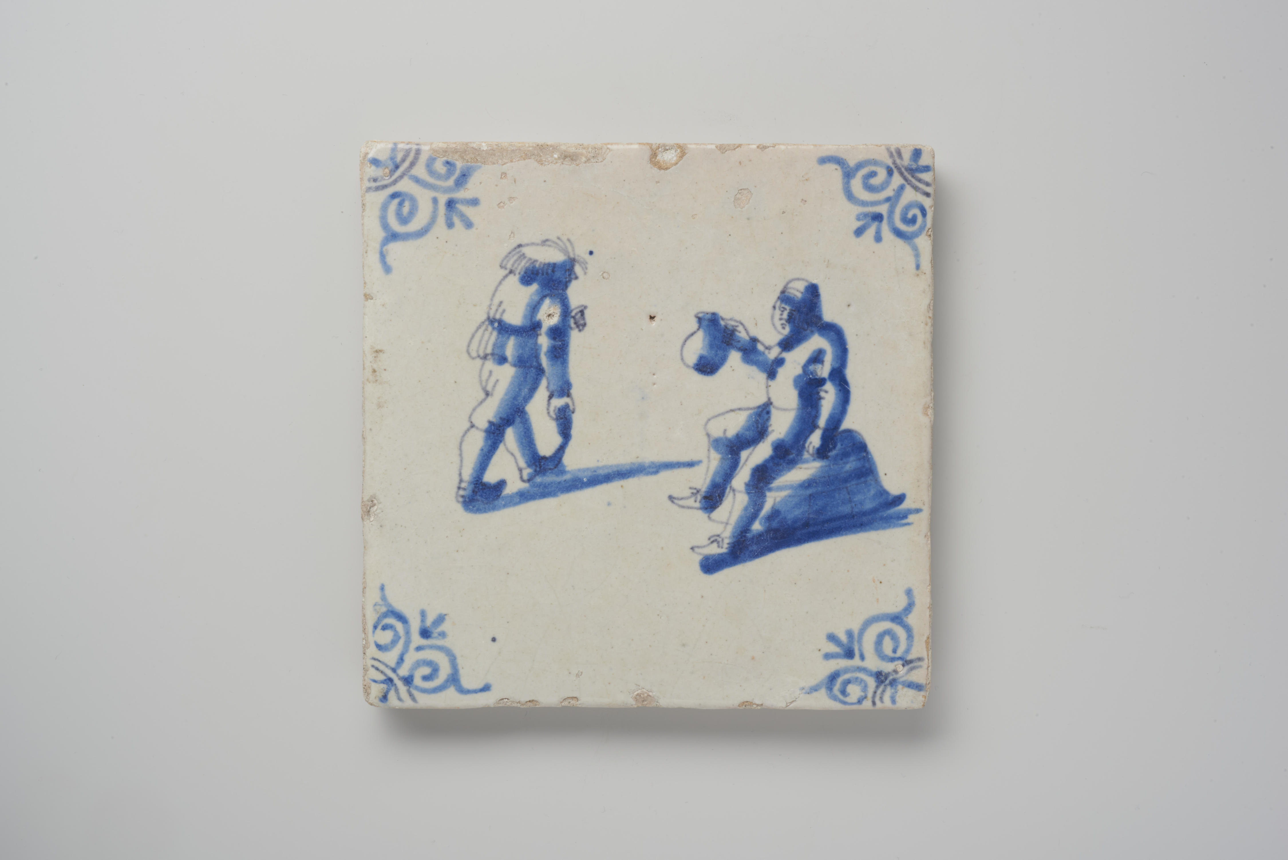 Wandtegel met afbeelding twee drinkende mannen, 1625–1650