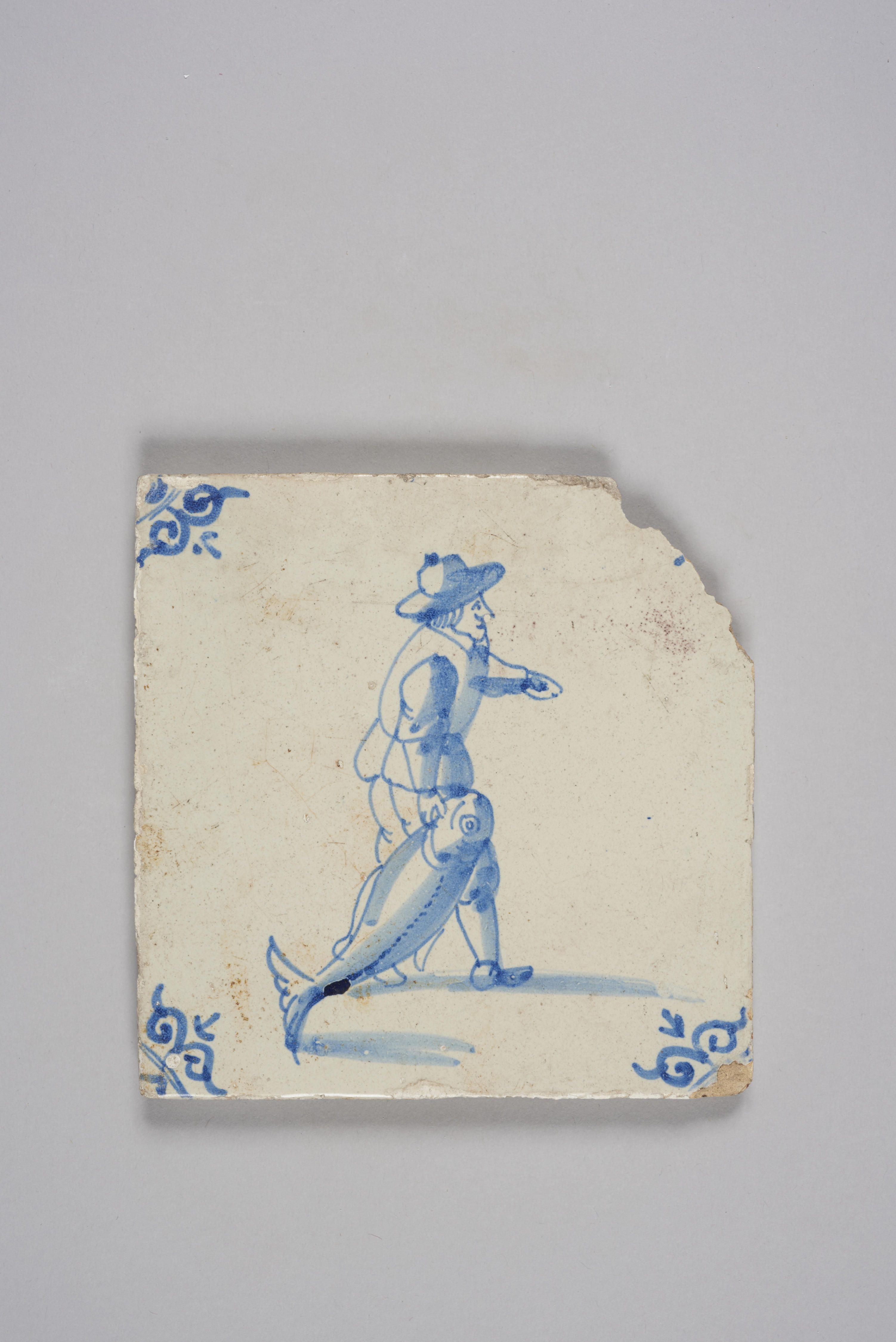 Wandtegel met afbeelding man met vis, 1600–1700