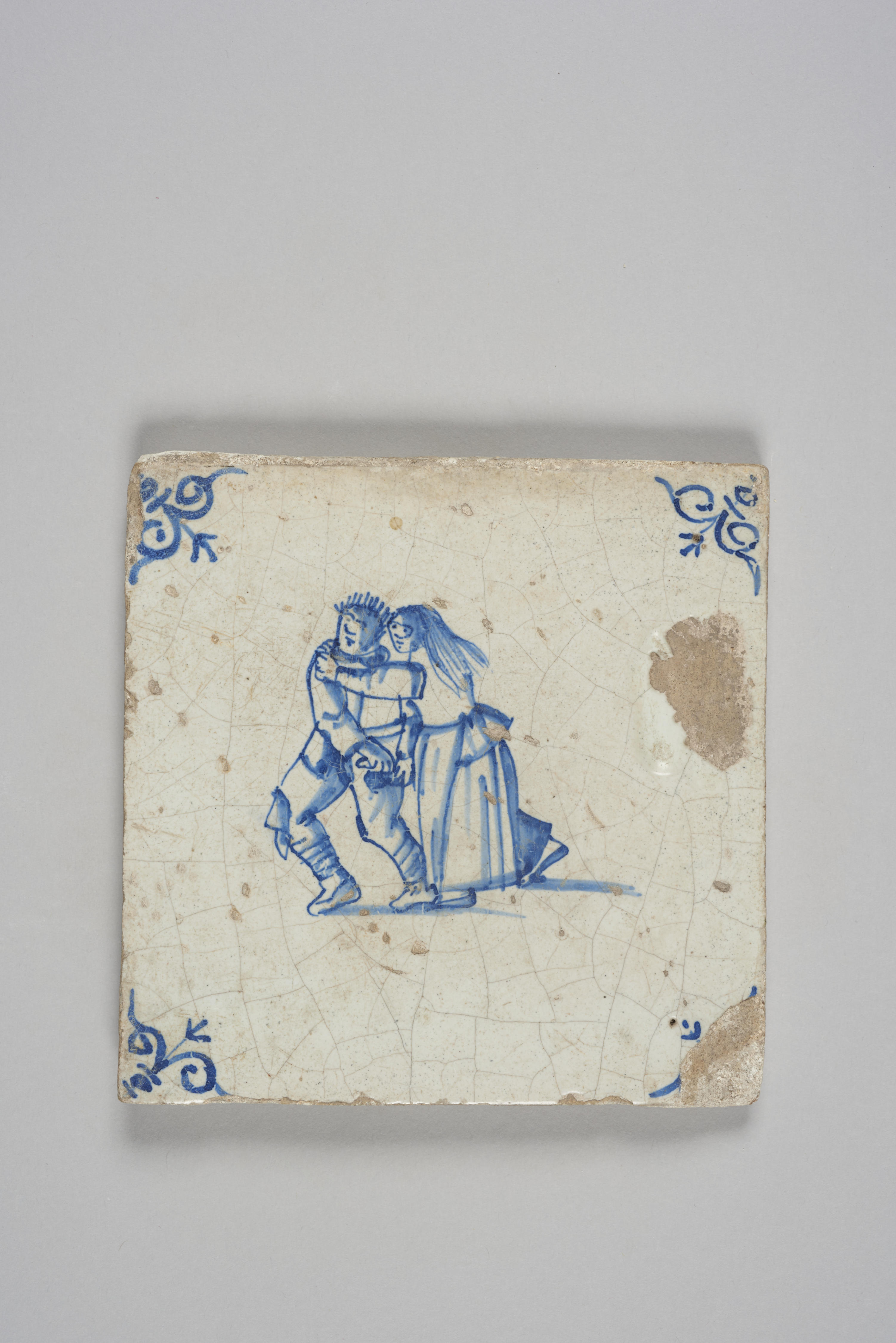 Wandtegel met afbeelding man en vrouw, 1600–1700