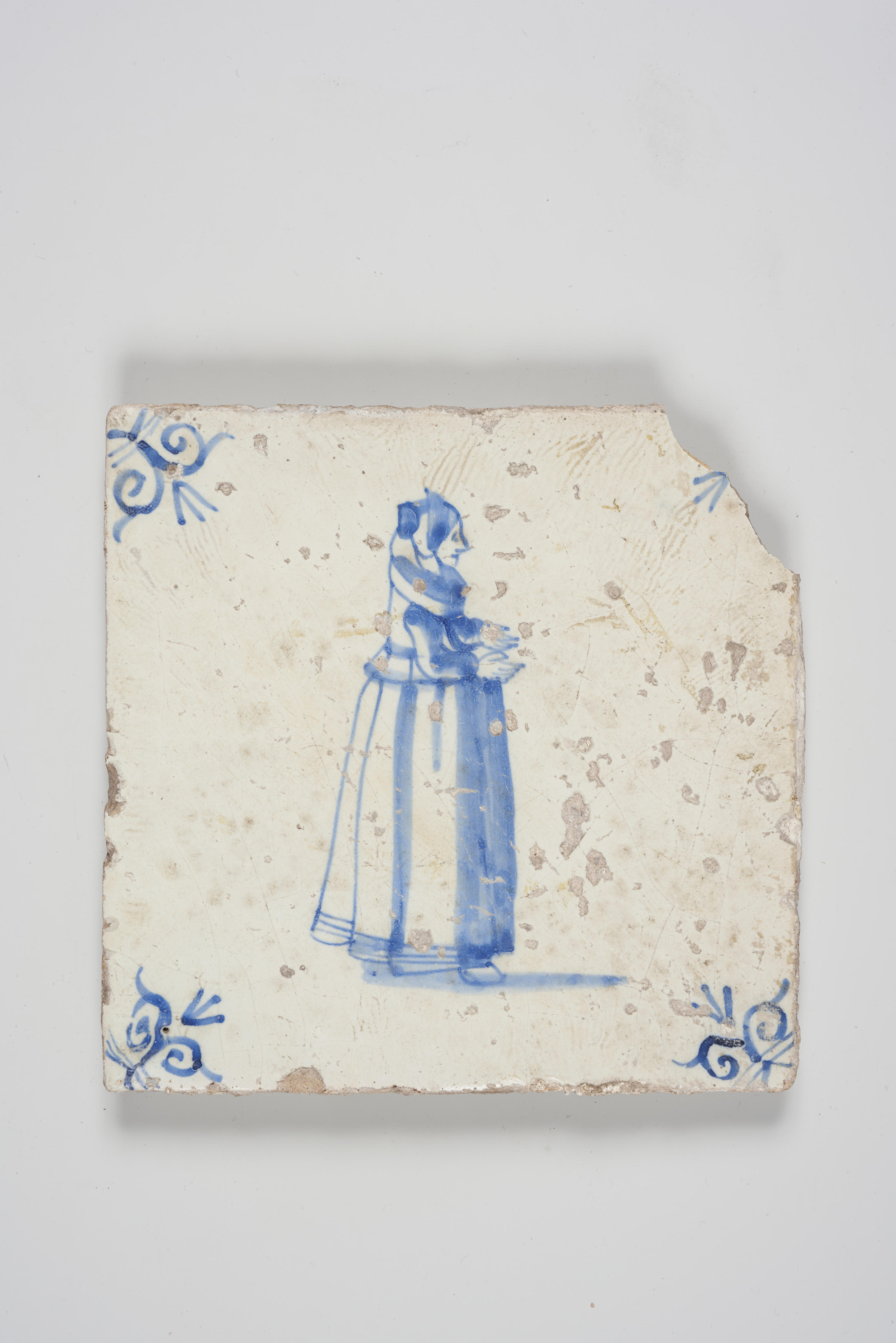 Wandtegel met afbeelding vrouw, 1600–1700