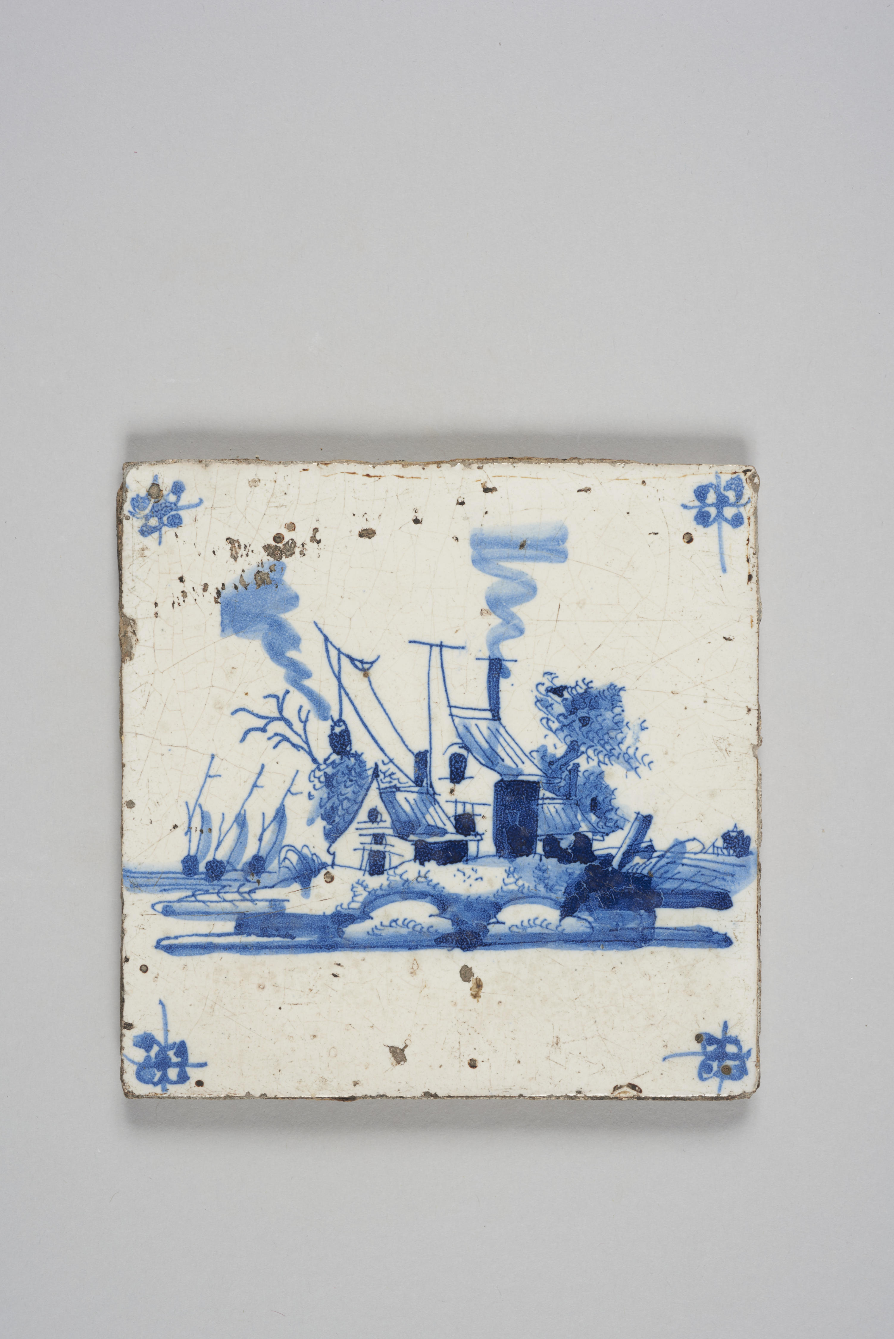 Wandtegel met afbeelding landschap, 1680–1930