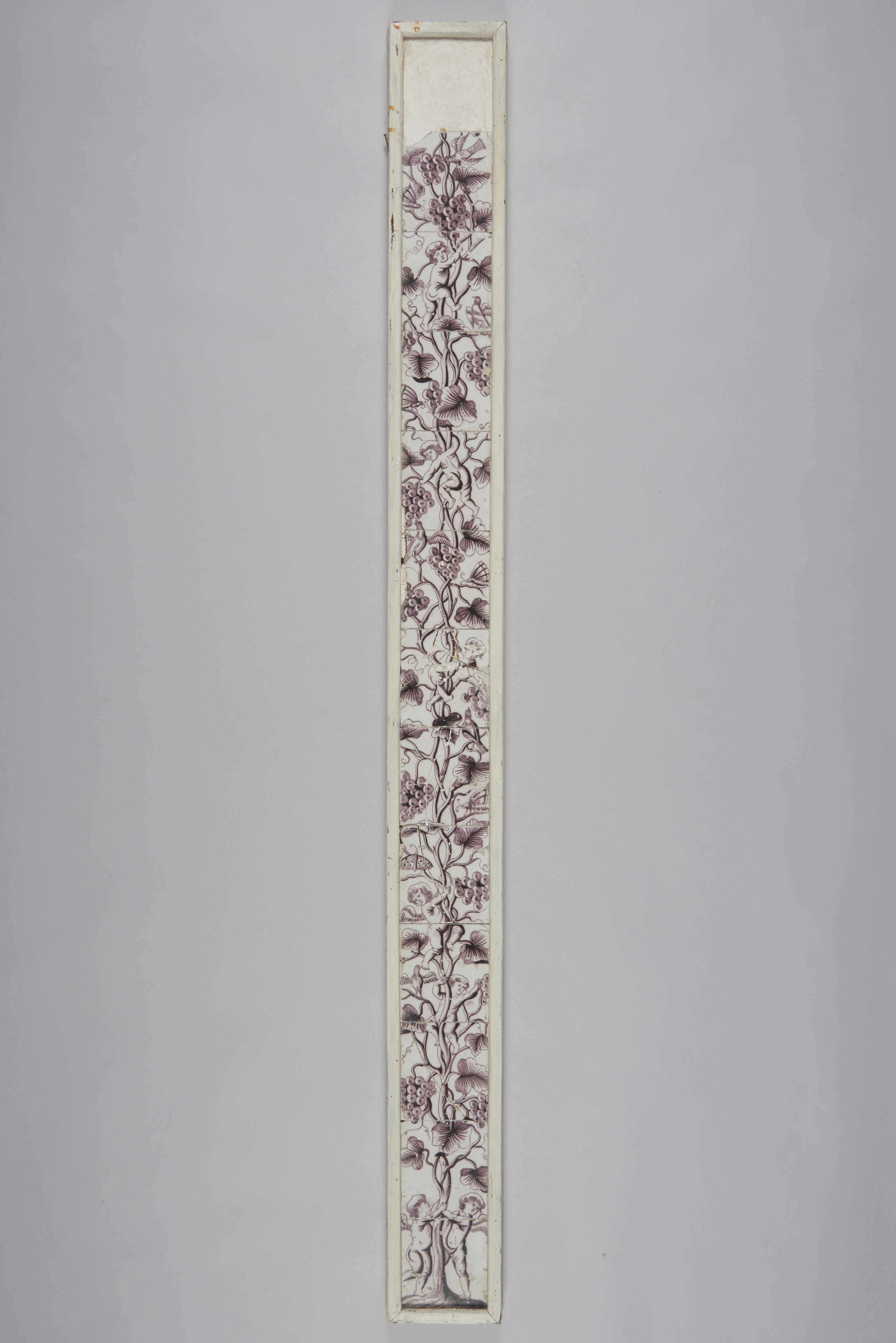 Tegeltableau, bestaande uit twaalf tegels met een afbeelding van een enkele pilaar met een druivenrank, vogels en cupido's. De druivenrank ontspruit aan de aarde en wordt onderaan door twee cupido's omarmd. Tussen de bladeren en druiventrossen cirkelen nog meer cupido's, vogels en vlinders. Eén tegel ontbreekt.
