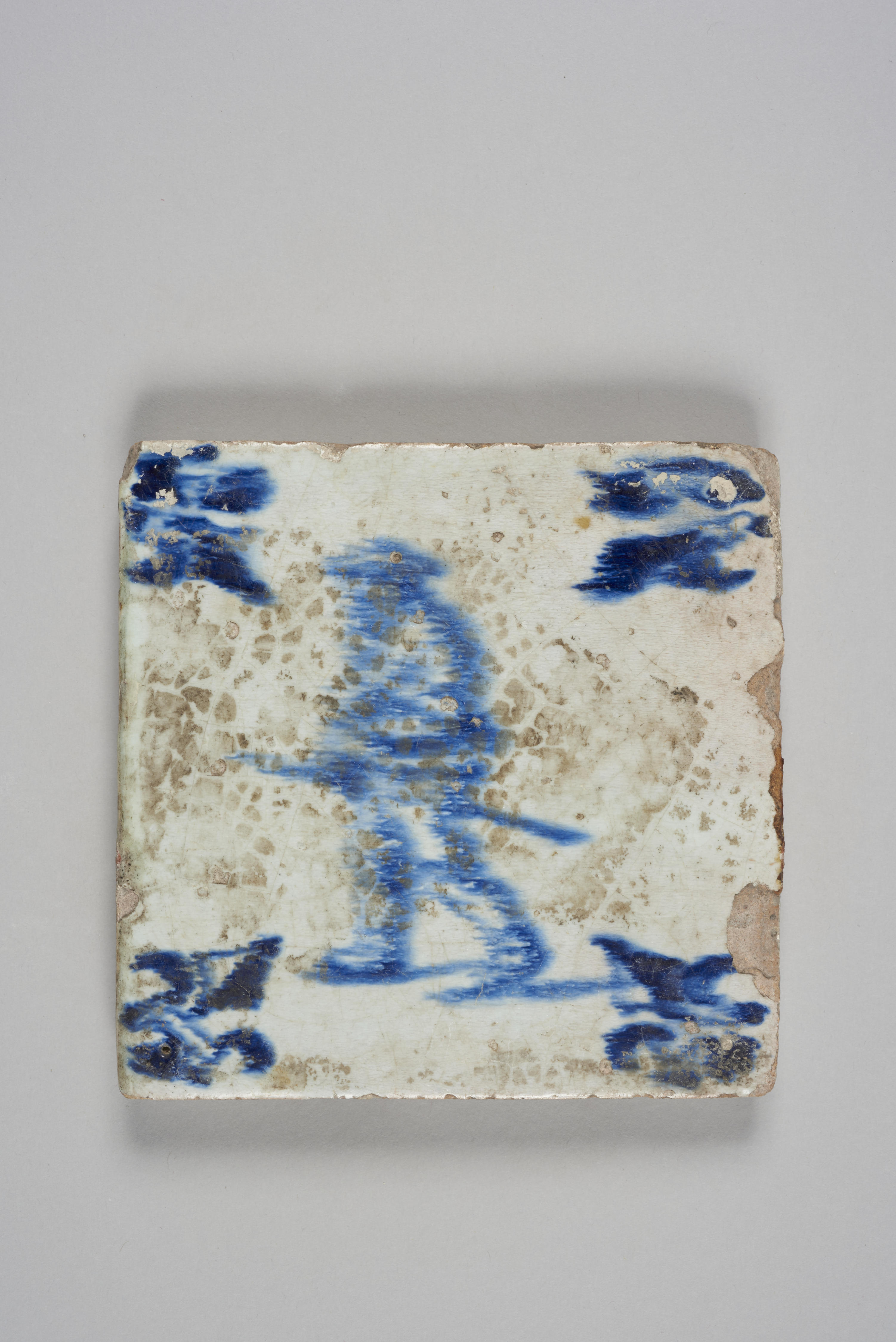 Wandtegel met afbeelding man met stok, 1600–1700