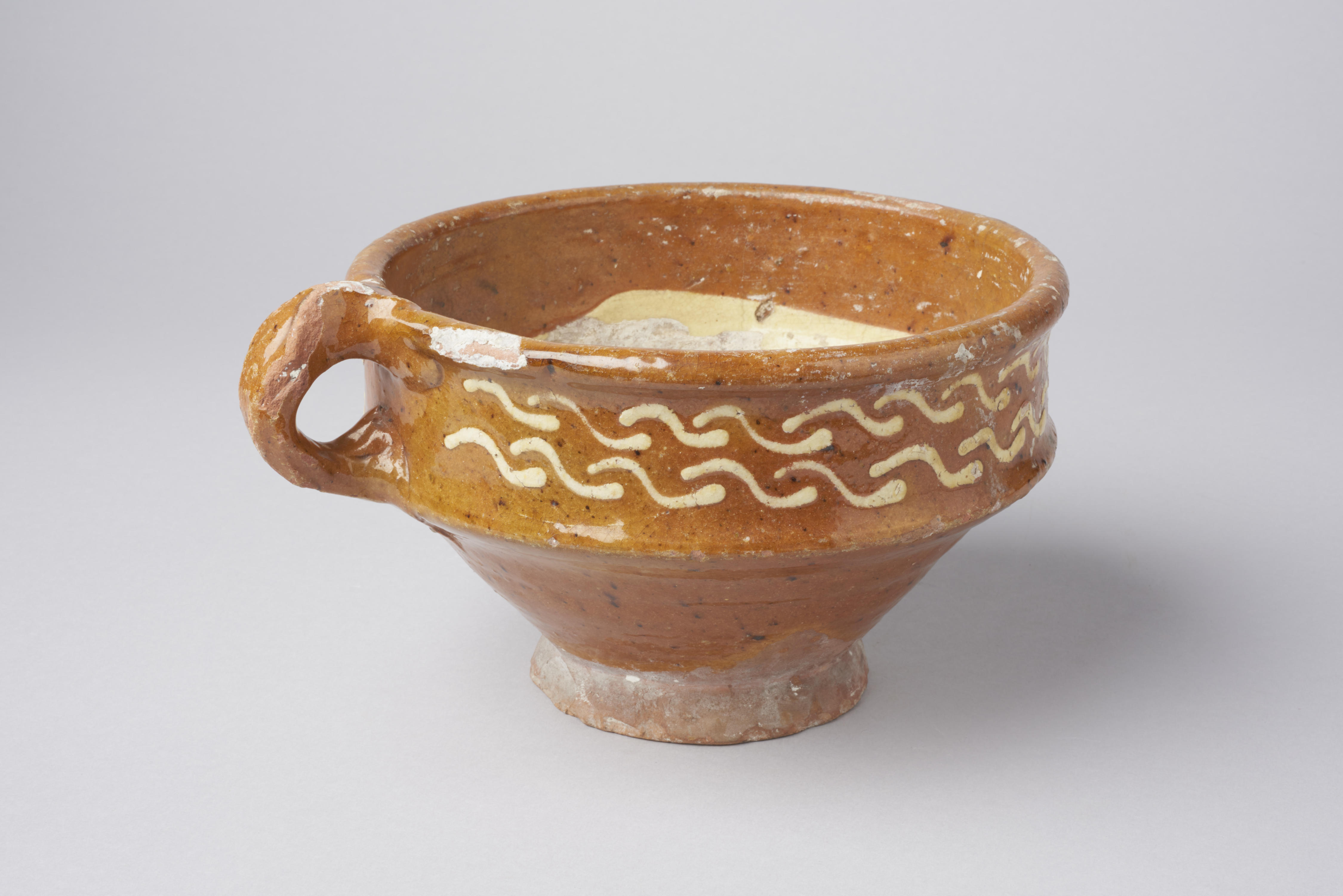 Melktest. Het glazuur is aangetast door het gebruik en de inwerking van (melk)zuren en zouten.