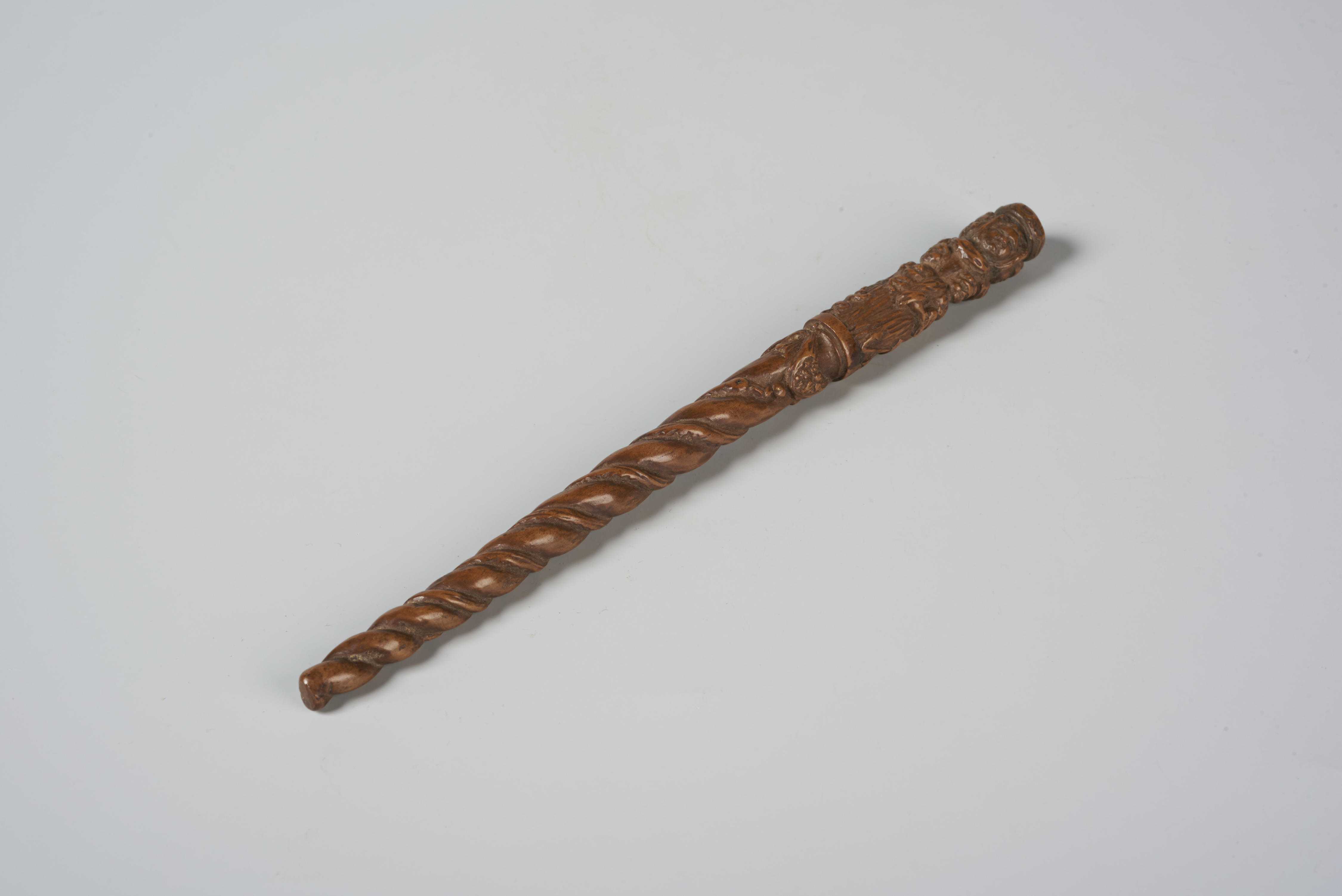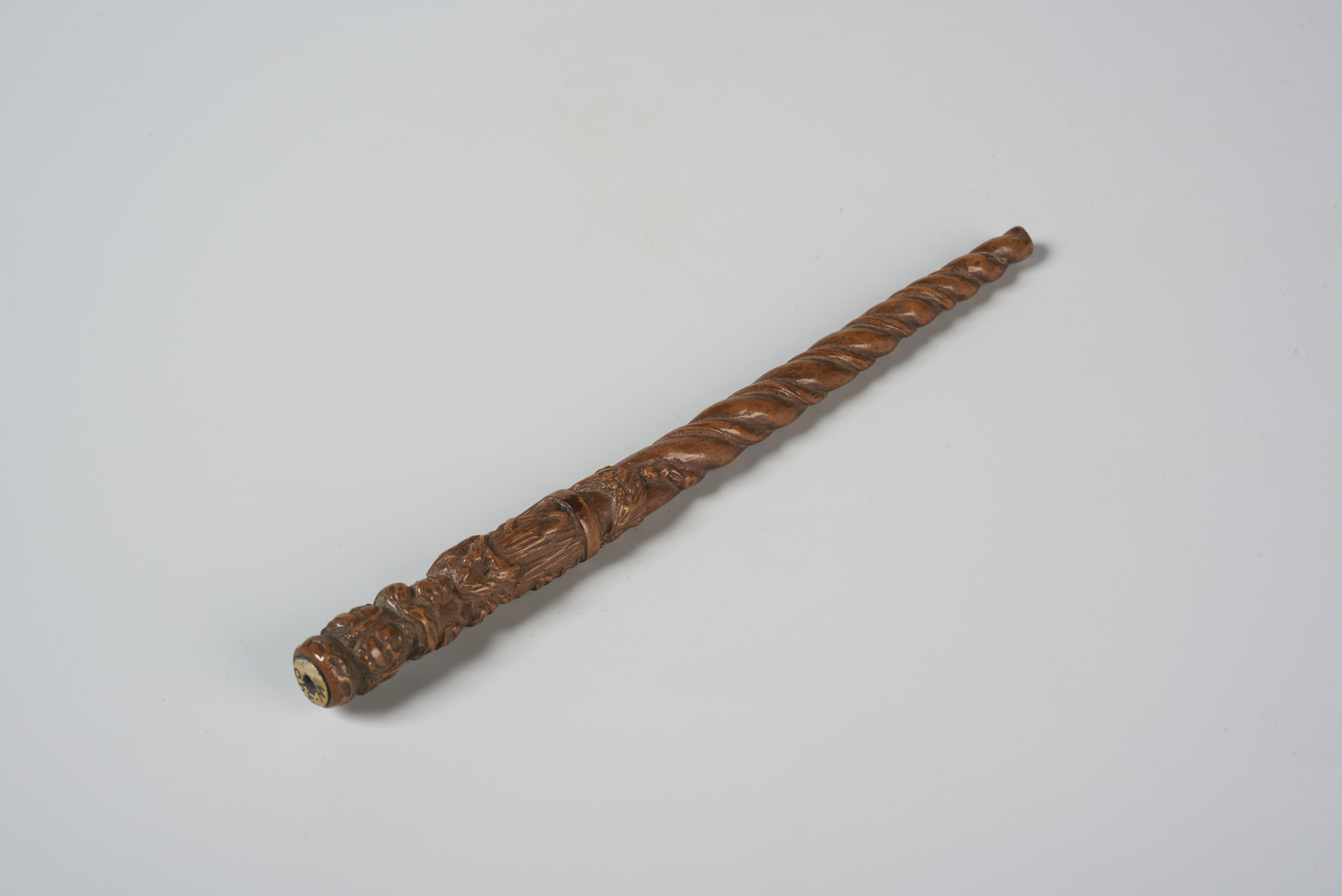 Breischede waarin bovenaan een kroon met daaronder vier maskers gesneden is. Daaronder zijn drie vrouwen afgebeeld die Geloof, Hoop en Liefde verbeelden. De vrouwen staan op een plaat waaraan een slinger met vruchten hangt. Het overig tweederde deel van de breischede is getorst. Van beneden naar boven kronkelen twee slangen door de gleuven.