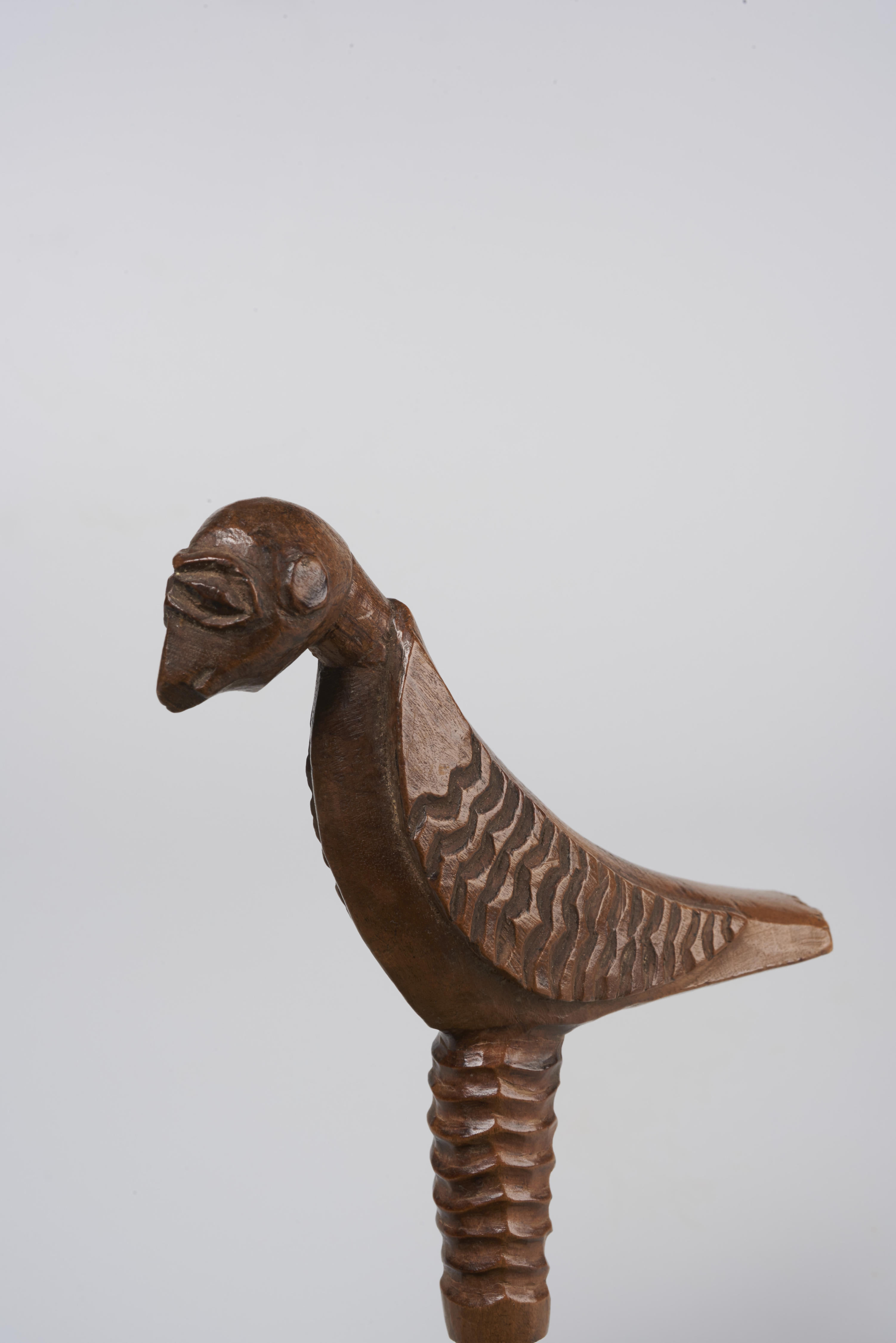 Houten vogeltje met aan de onderzijde een punt waarmee het voorwerp ergens in vastgestoken kan worden. De vogel zou van een palmpaas afkomstig zijn en omstreeks 1850 in Lith zijn gemaakt.