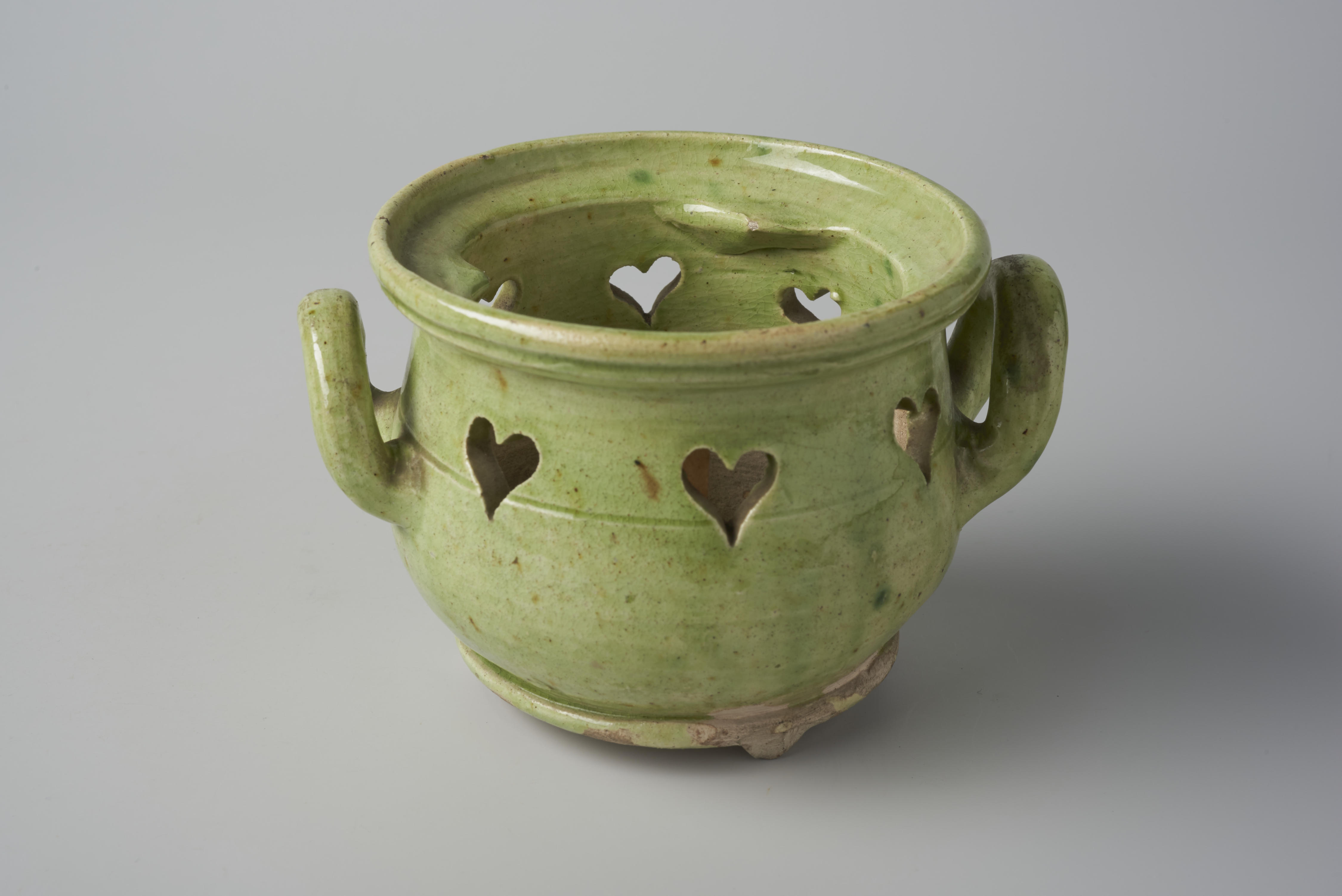Speelgoedkomfoor, versierd met uitgesneden hartjes.