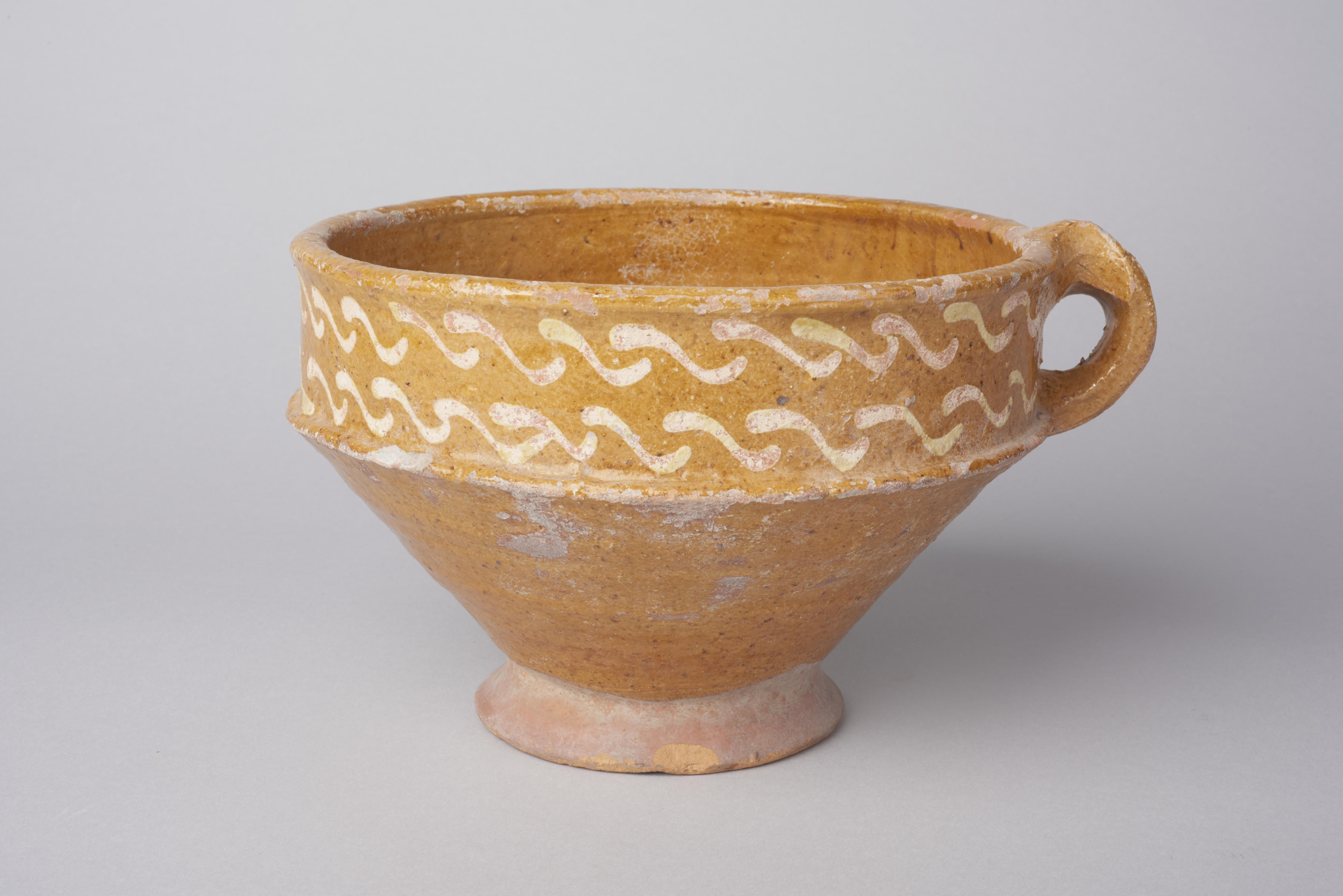 Melktest. Het glazuur aan de binnen- en buitenkant is aangetast door het gebruik en de inwerking van melkzuren en zouten.